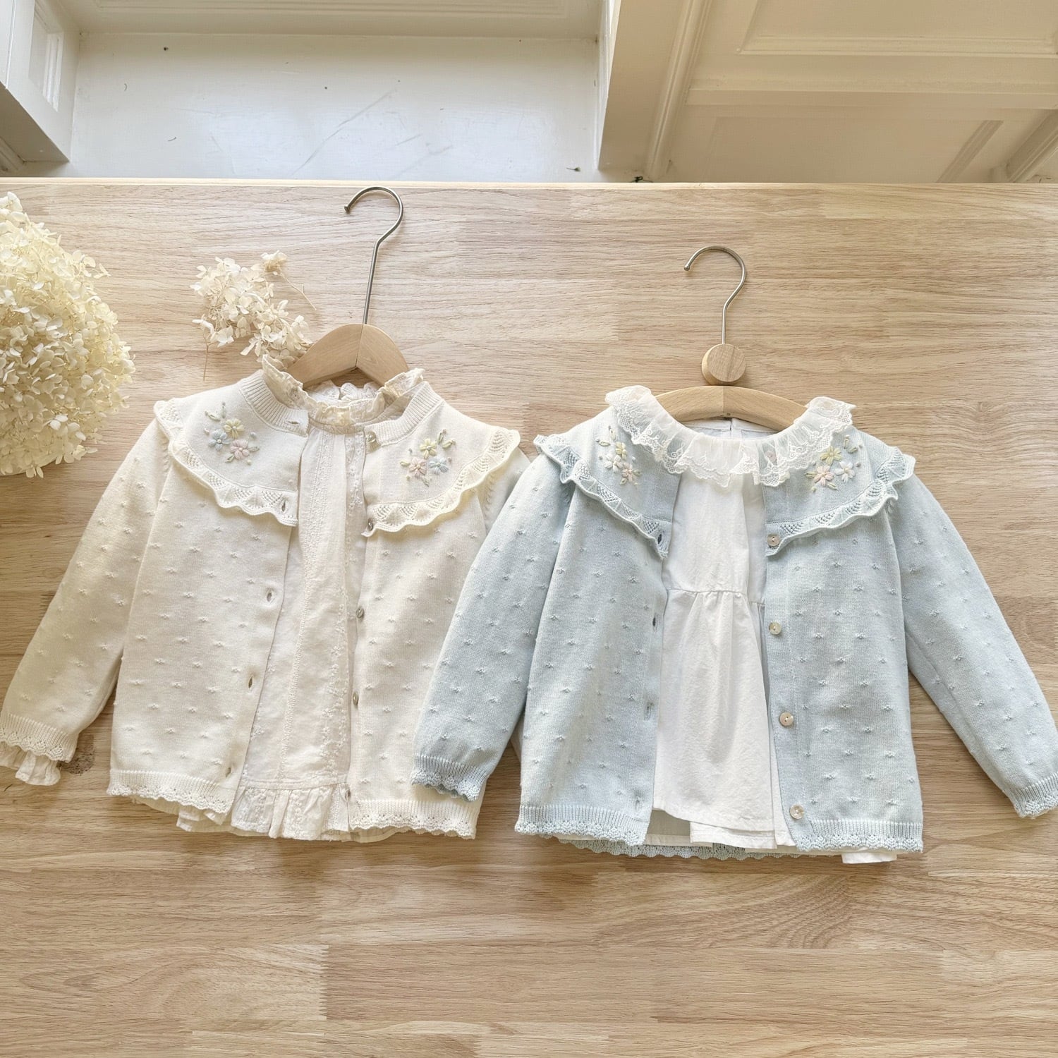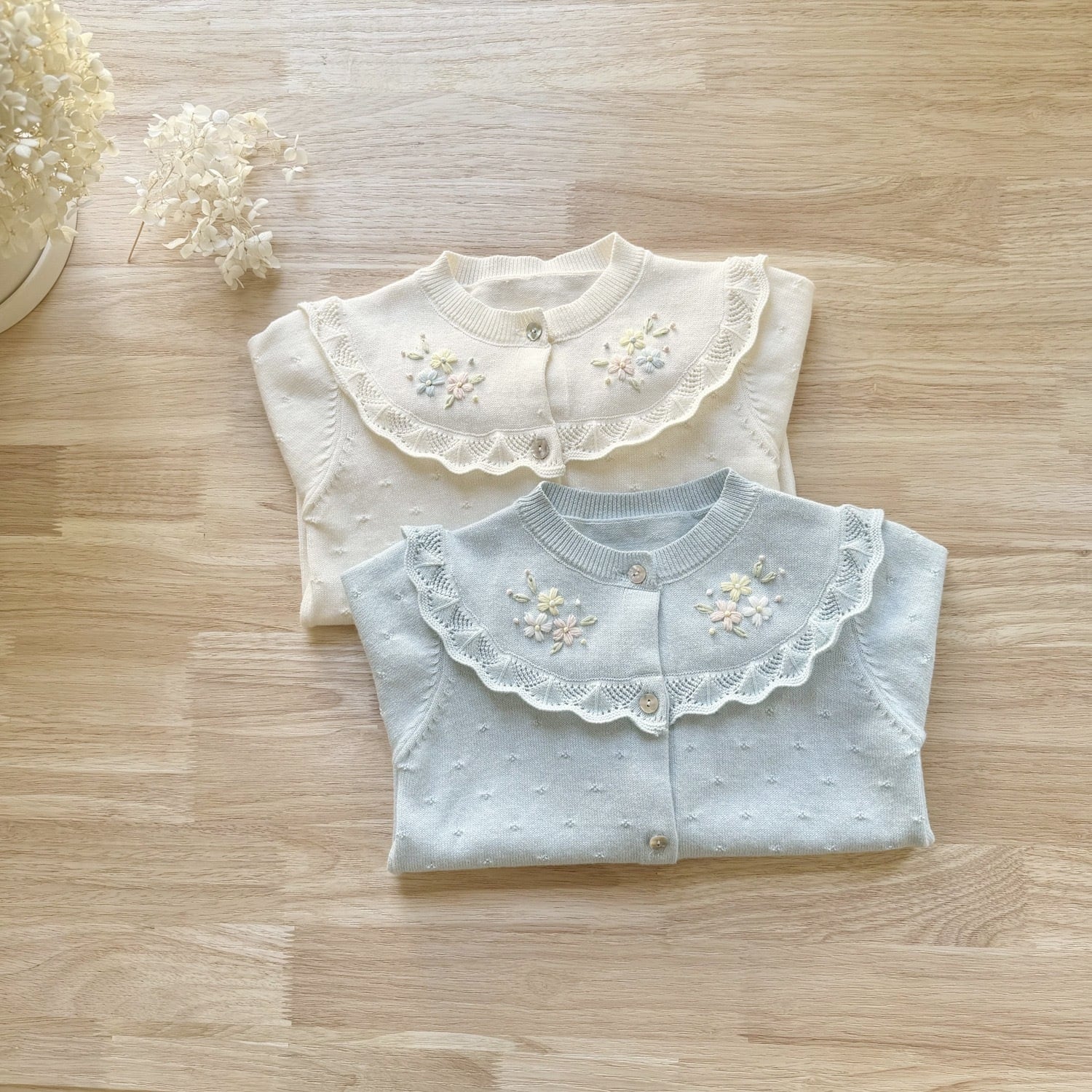 【即納】(90〜150cm)再入荷 春 2色 刺繍 カーディガン