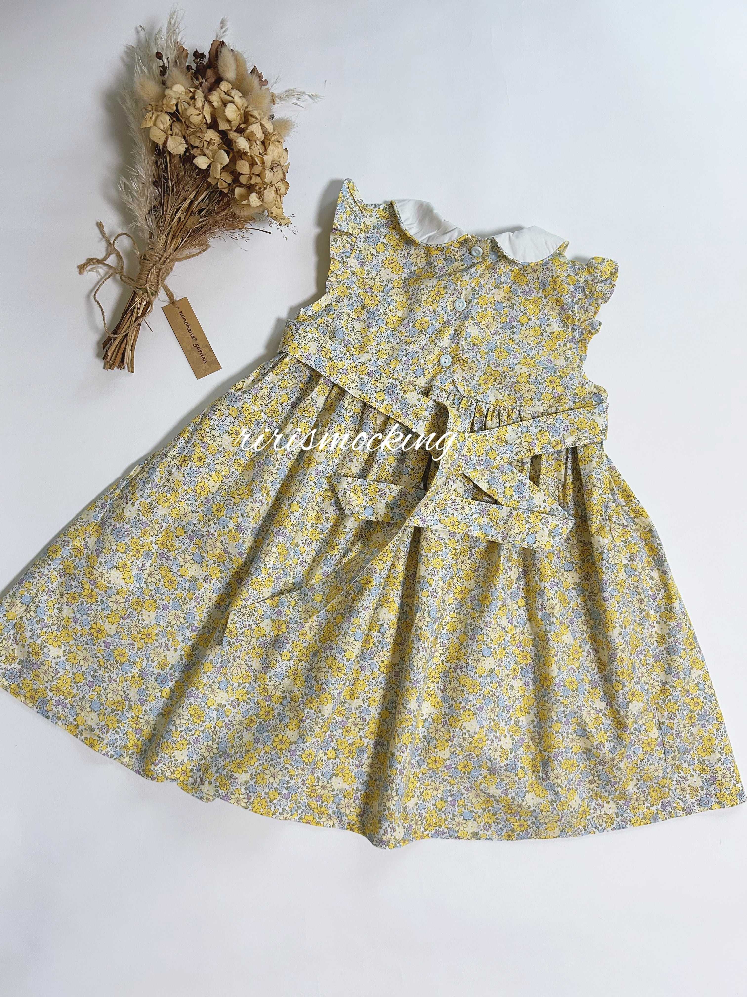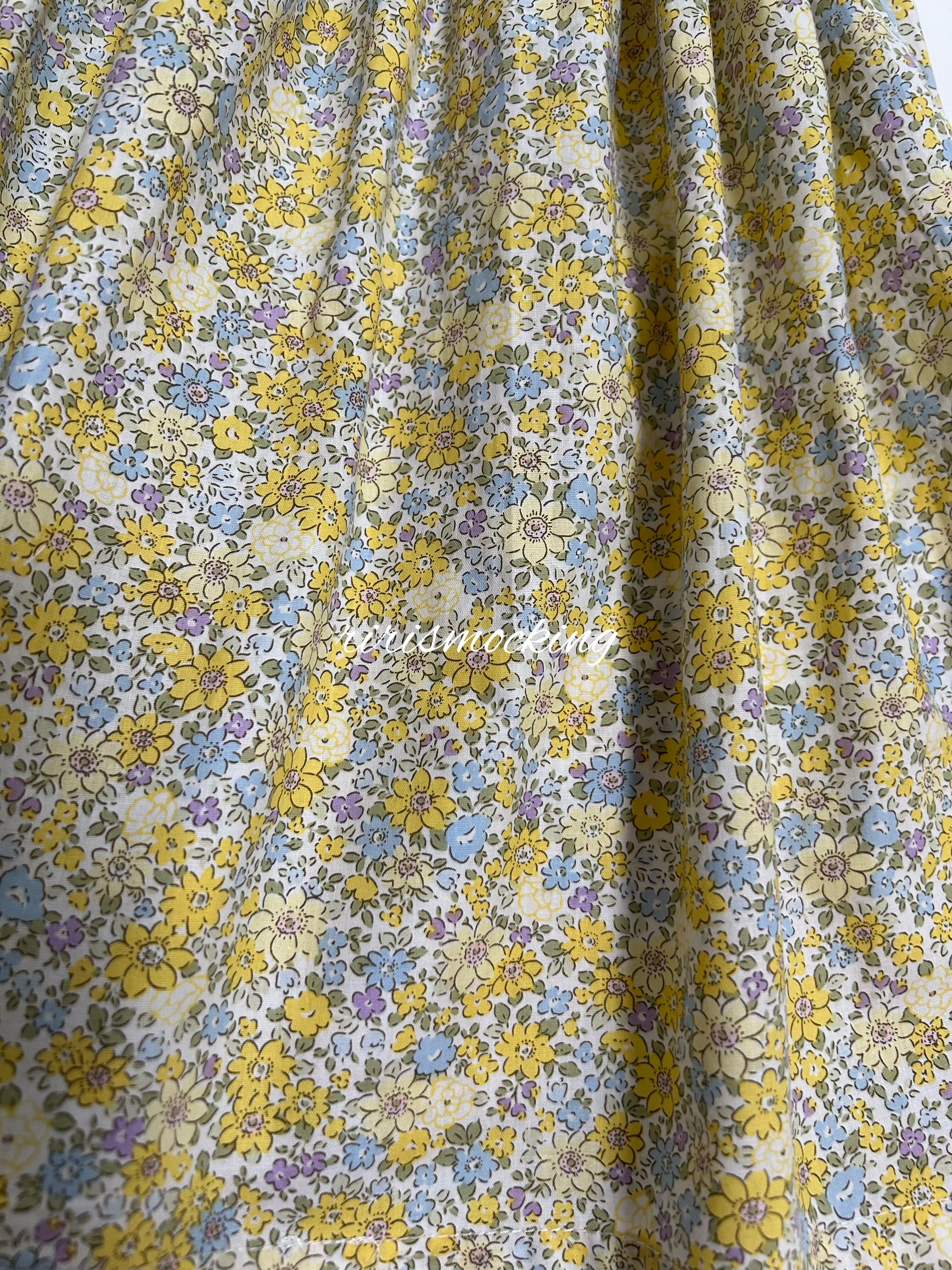 【即納】(95〜140cm) 新作 イエロー 紫 小花柄 スモッキング ワンピース