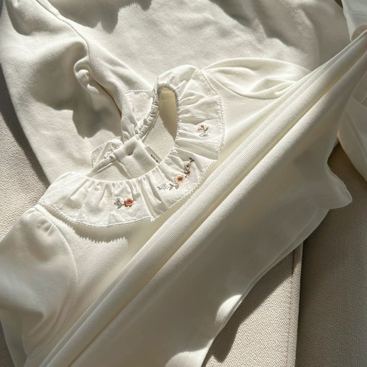 【即納】(90〜150cm) 新作 襟フリル 刺繍 ブラウス
