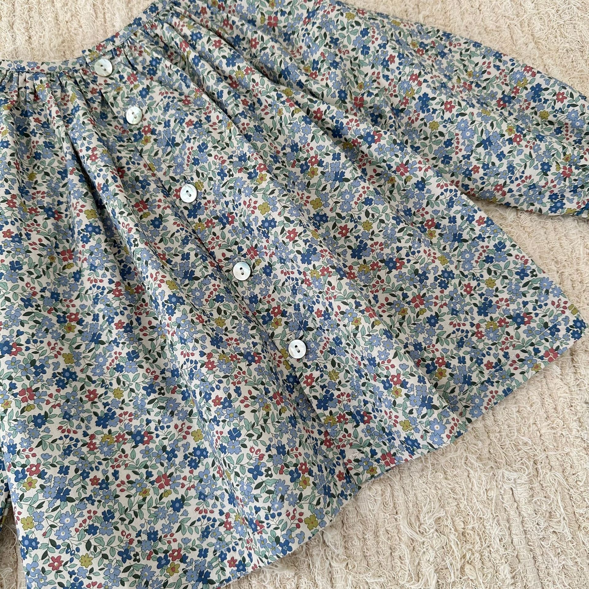 ★ 新品 水色 小花柄 ビショップ スモッキング ブラウス トップス