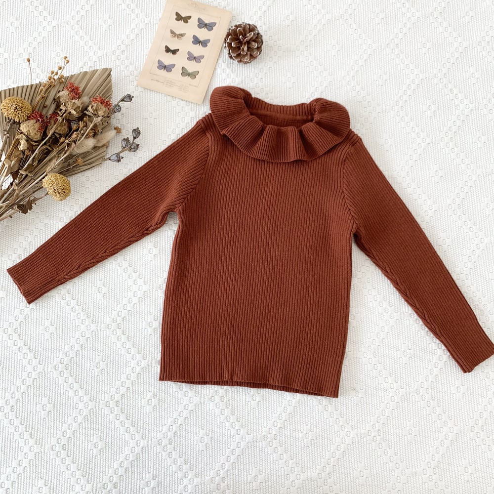 【即納】(80〜140cm) 新色 *ベージュ ブラウン 追加 *襟フリル 6色 リブセーター ブラウス