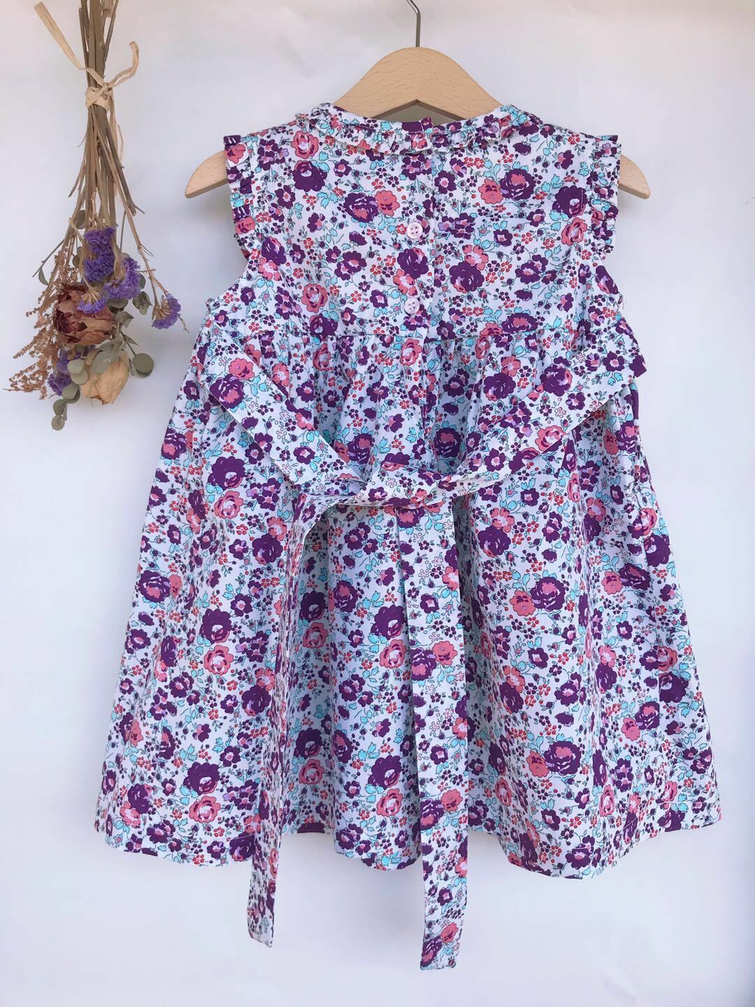 セール【即納】(85cm) 紫 薔薇 花柄 スモッキング ワンピース