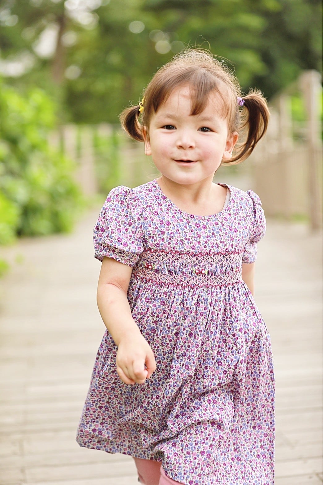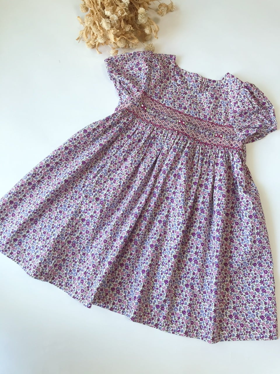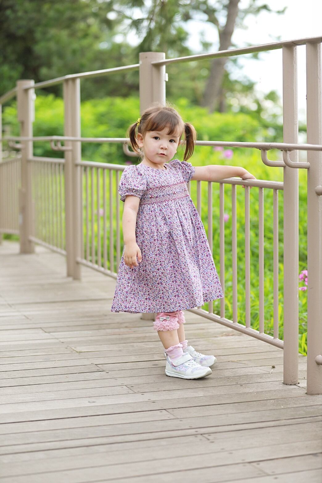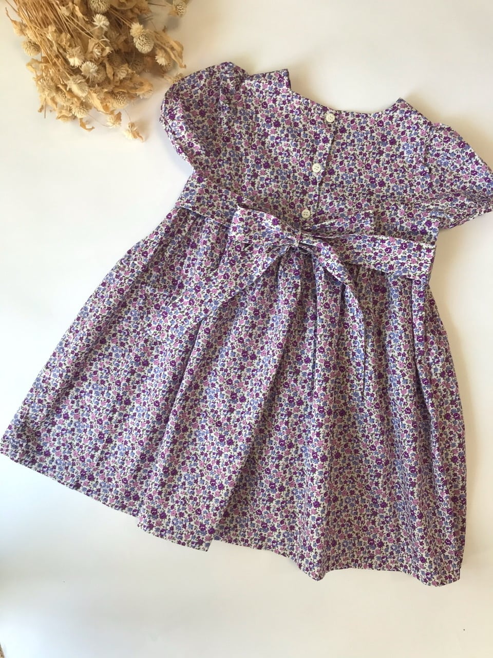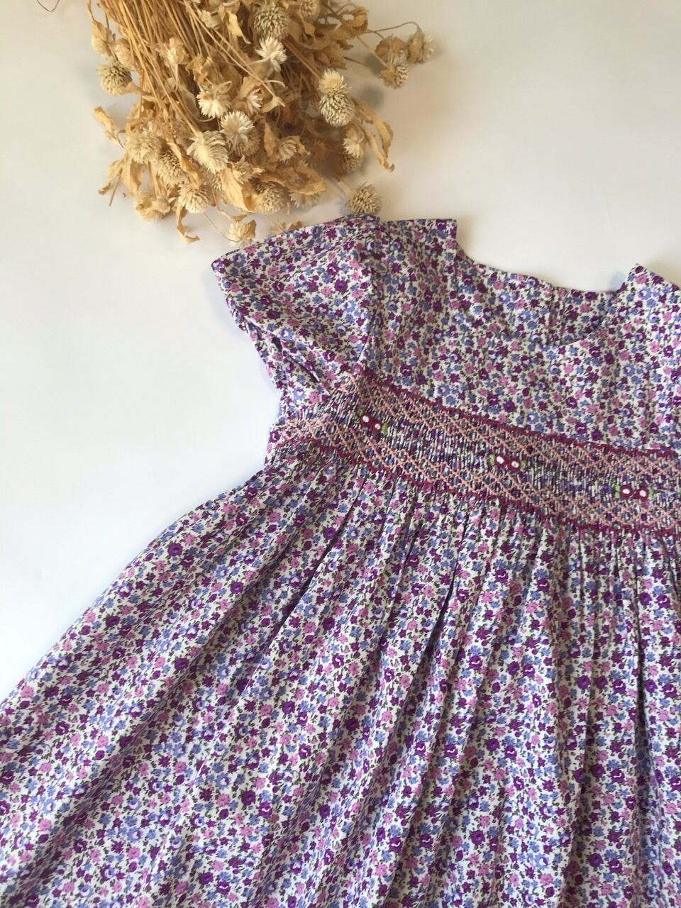 【即納】紫 小花柄 スモッキング ワンピース 95 100 110 120 130 140