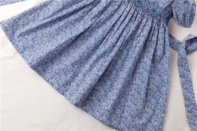 【即納】(80〜150cm) 新品 水色 小花柄 スモッキング ワンピース 姉妹お揃い