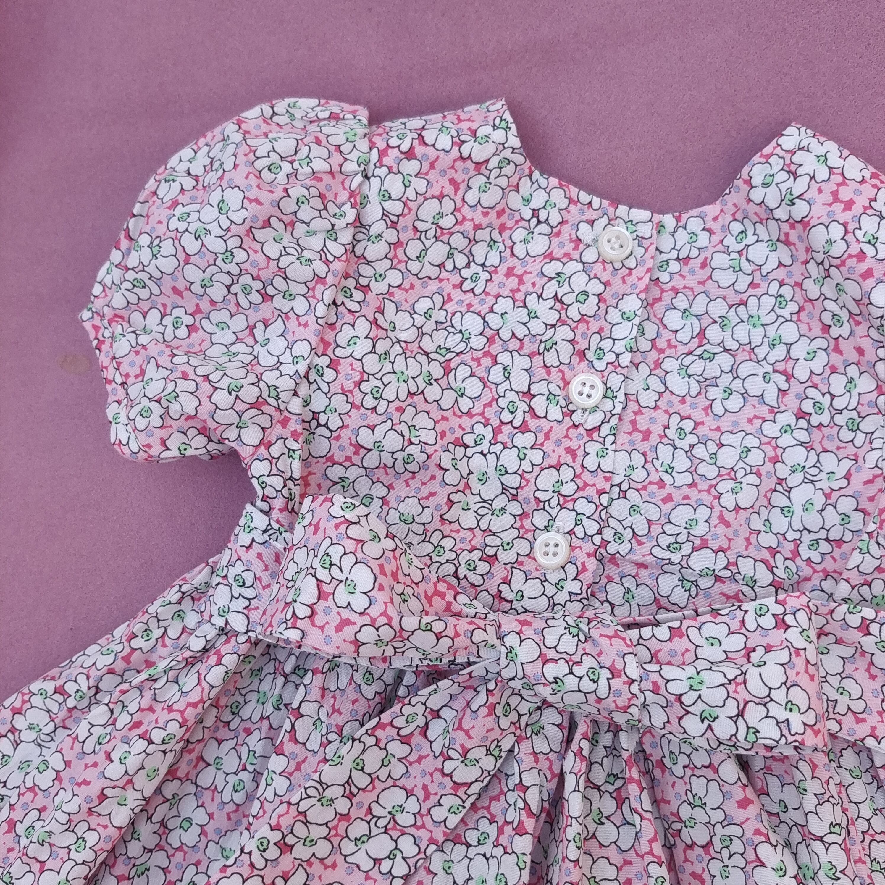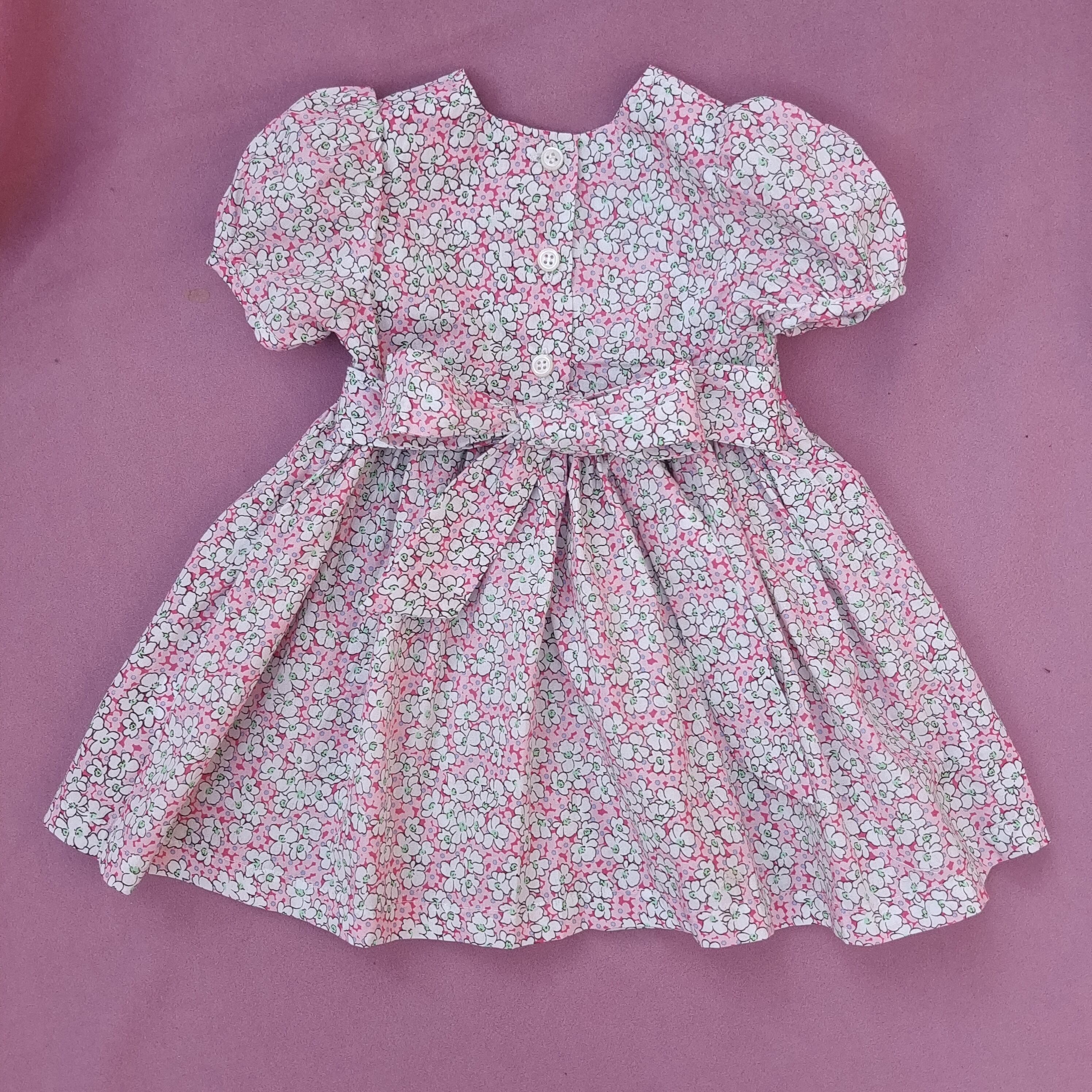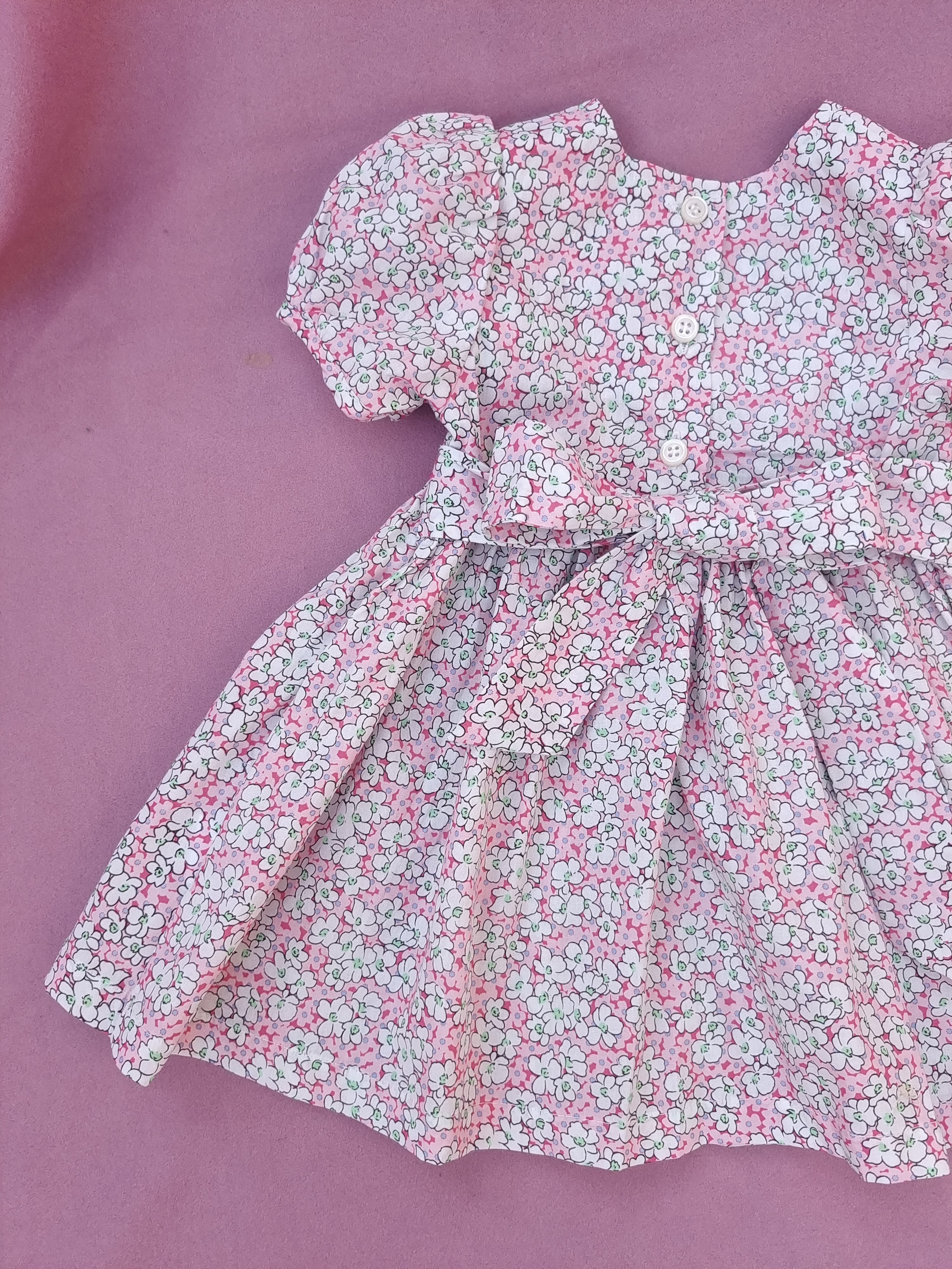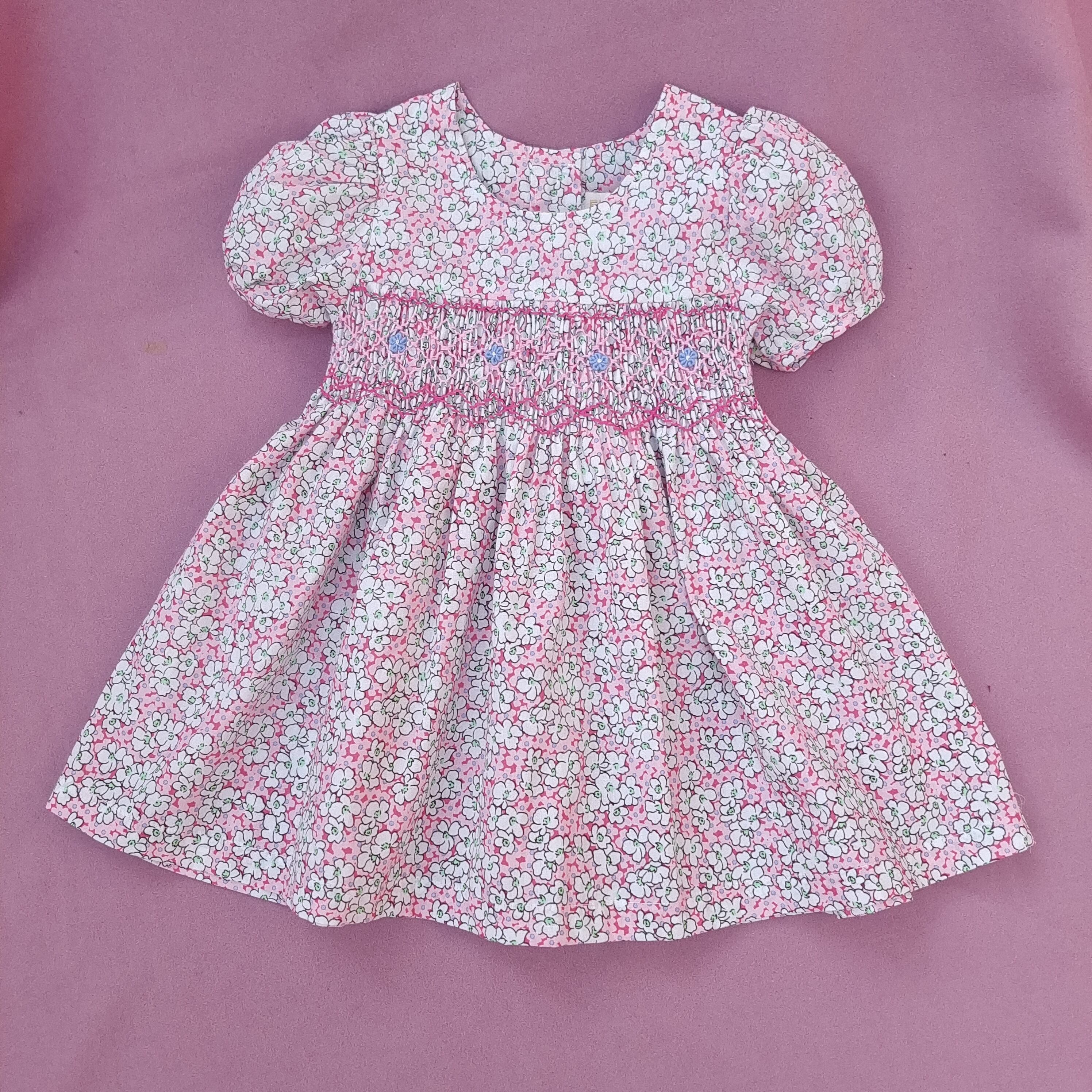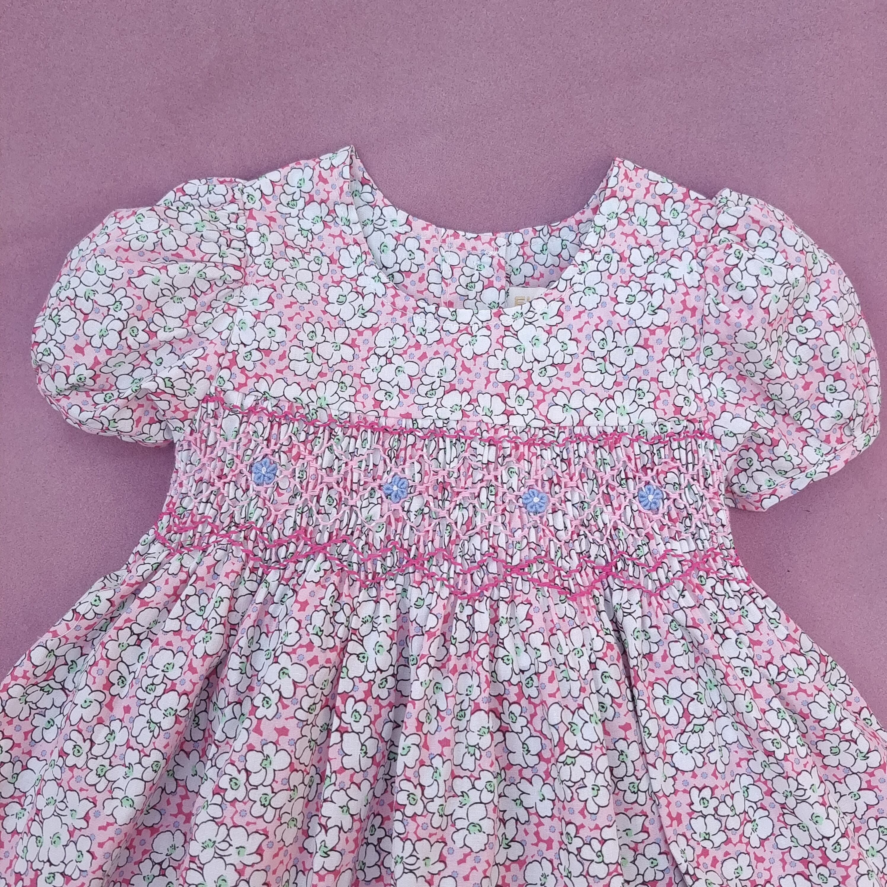 新品 ピンク 小花柄 スモッキング ワンピース
