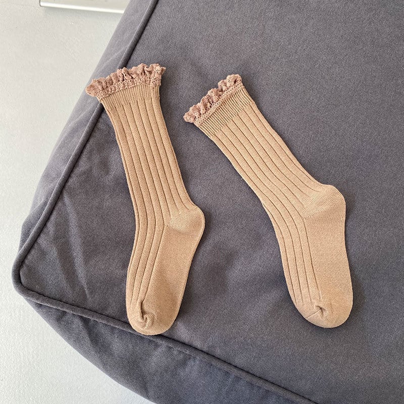 【即納】レース付き フリル リブ ソックス ハイソックス 1歳〜8歳