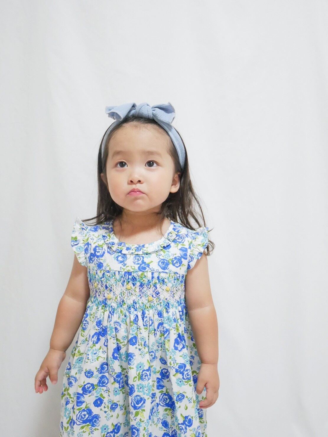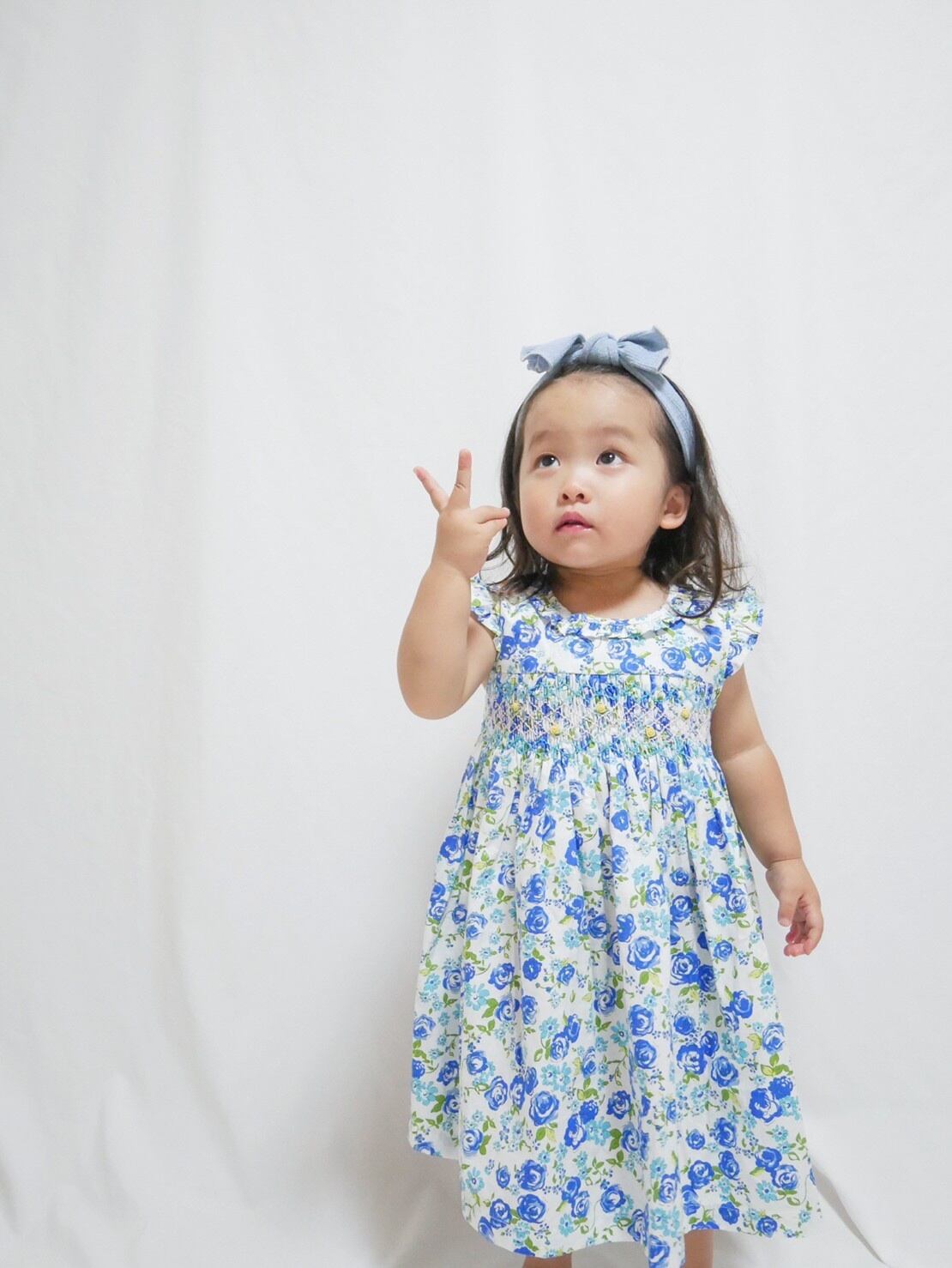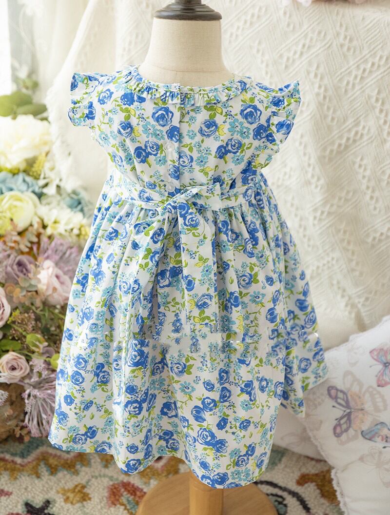 【即納】 (95〜130cm)ブルー 薔薇 スモッキング ジャンパースカート 95 100 110 120 130 140