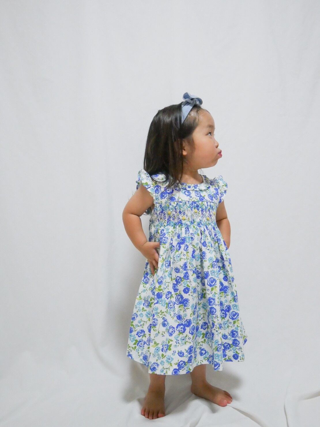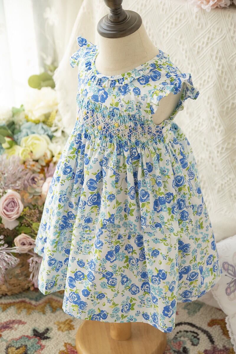 ★新品 ブルー薔薇 スモッキング ジャンパースカート