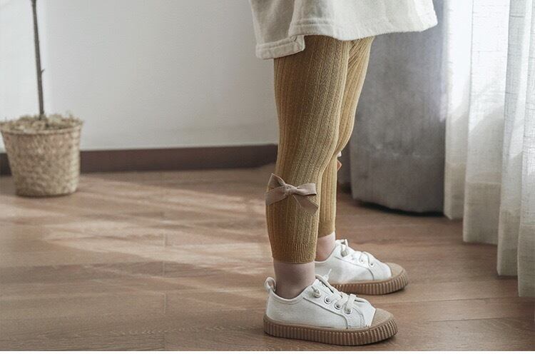 ★新品 秋 冬 9分丈 リボン付き リブレギンス