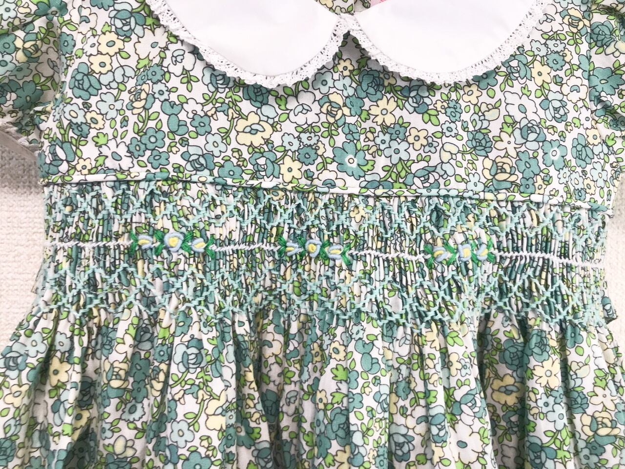 手刺繍のスモッキング刺繍とても素敵です。