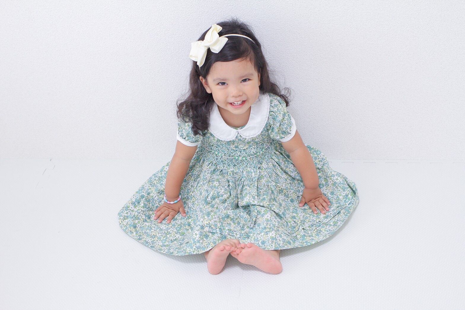 【即納】セール 100 グリーン 小花柄 ワンピース