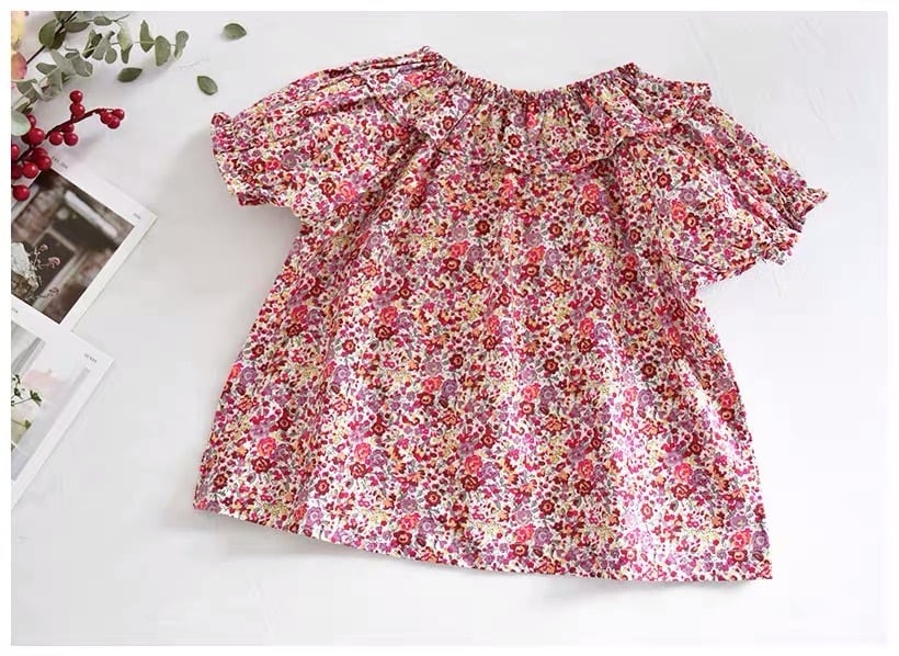 小花柄、襟フリルとても可愛いらしい一枚です。