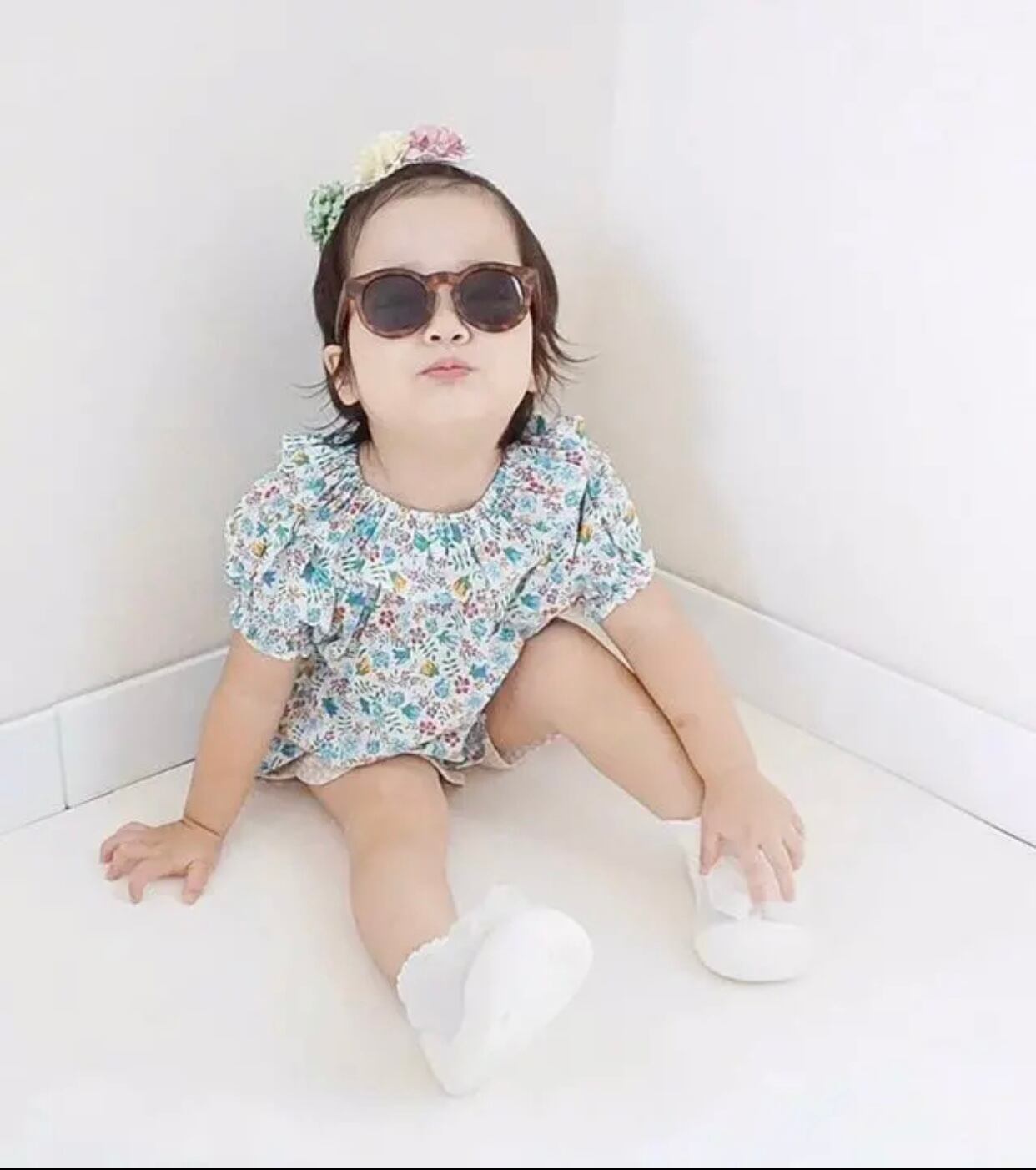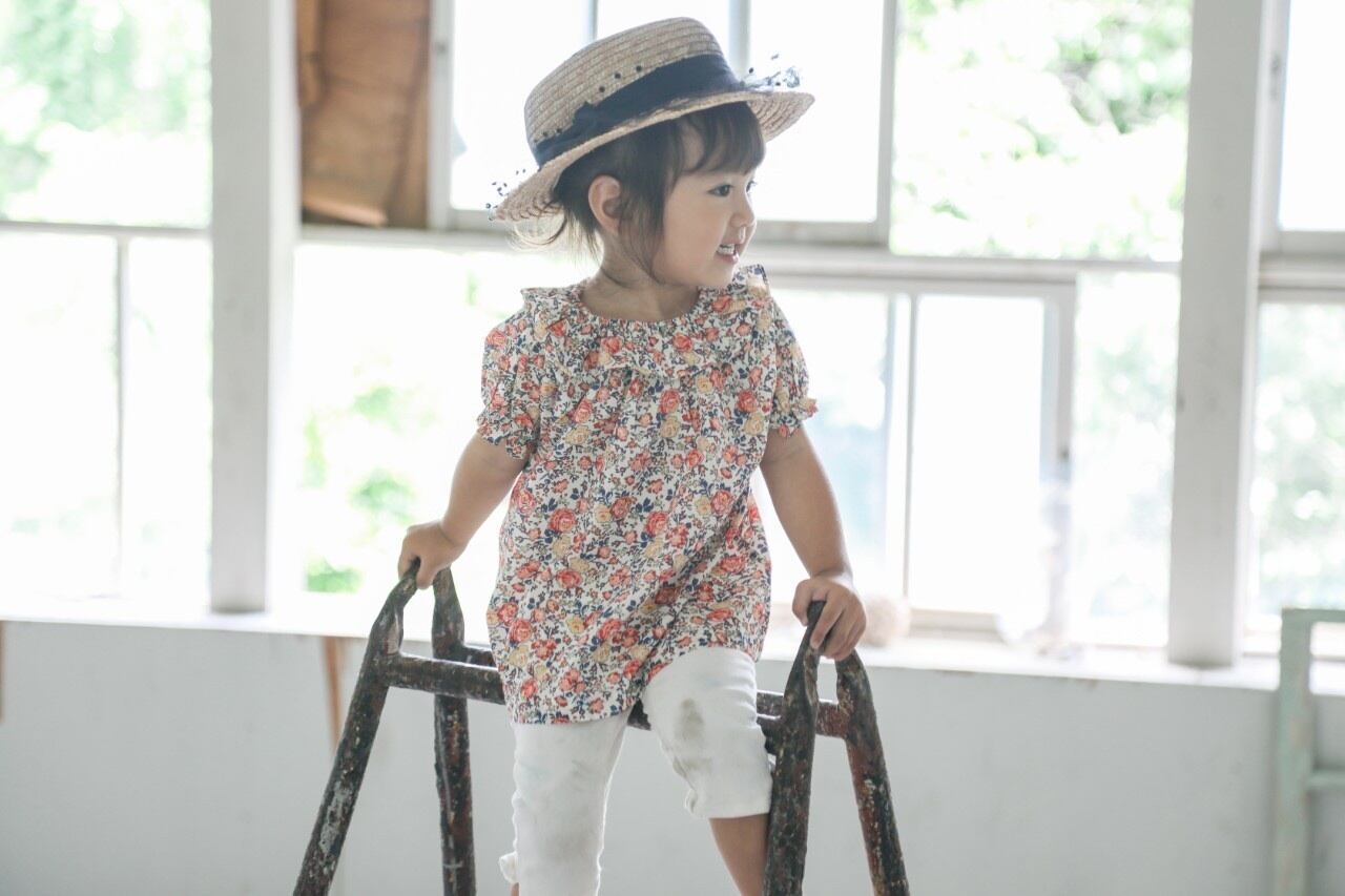 小花柄、襟フリルとても可愛いらしい一枚です。