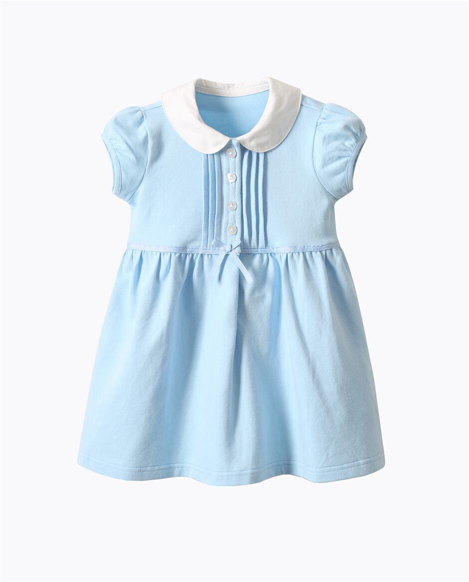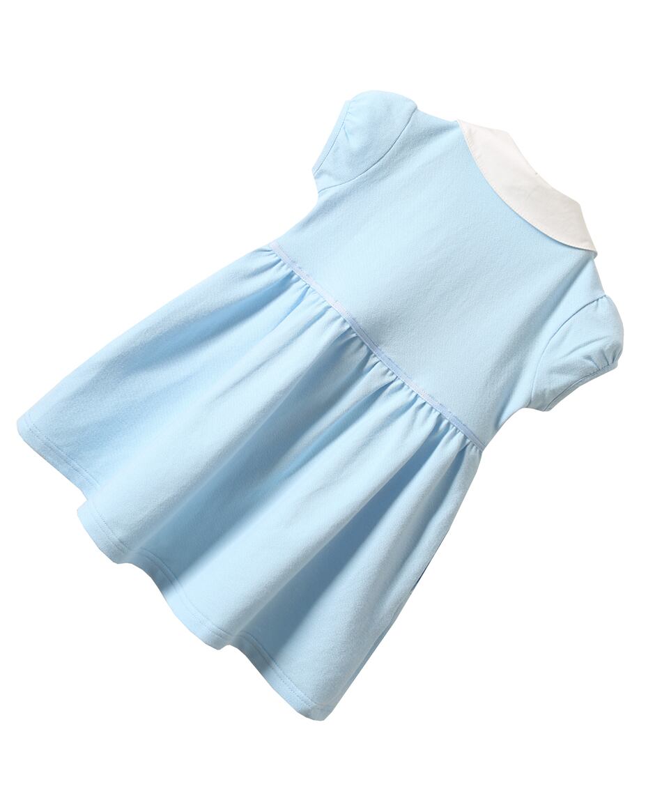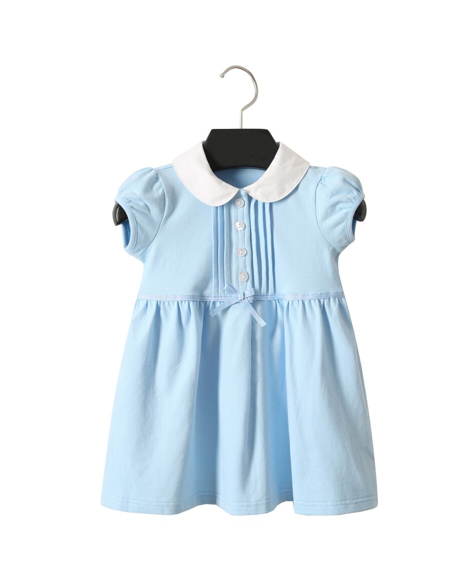 【即納】(90〜120cm)前ボタン 水色 鹿の子 ワンピース 80 90 100 110 120 130 お教室 お習い事