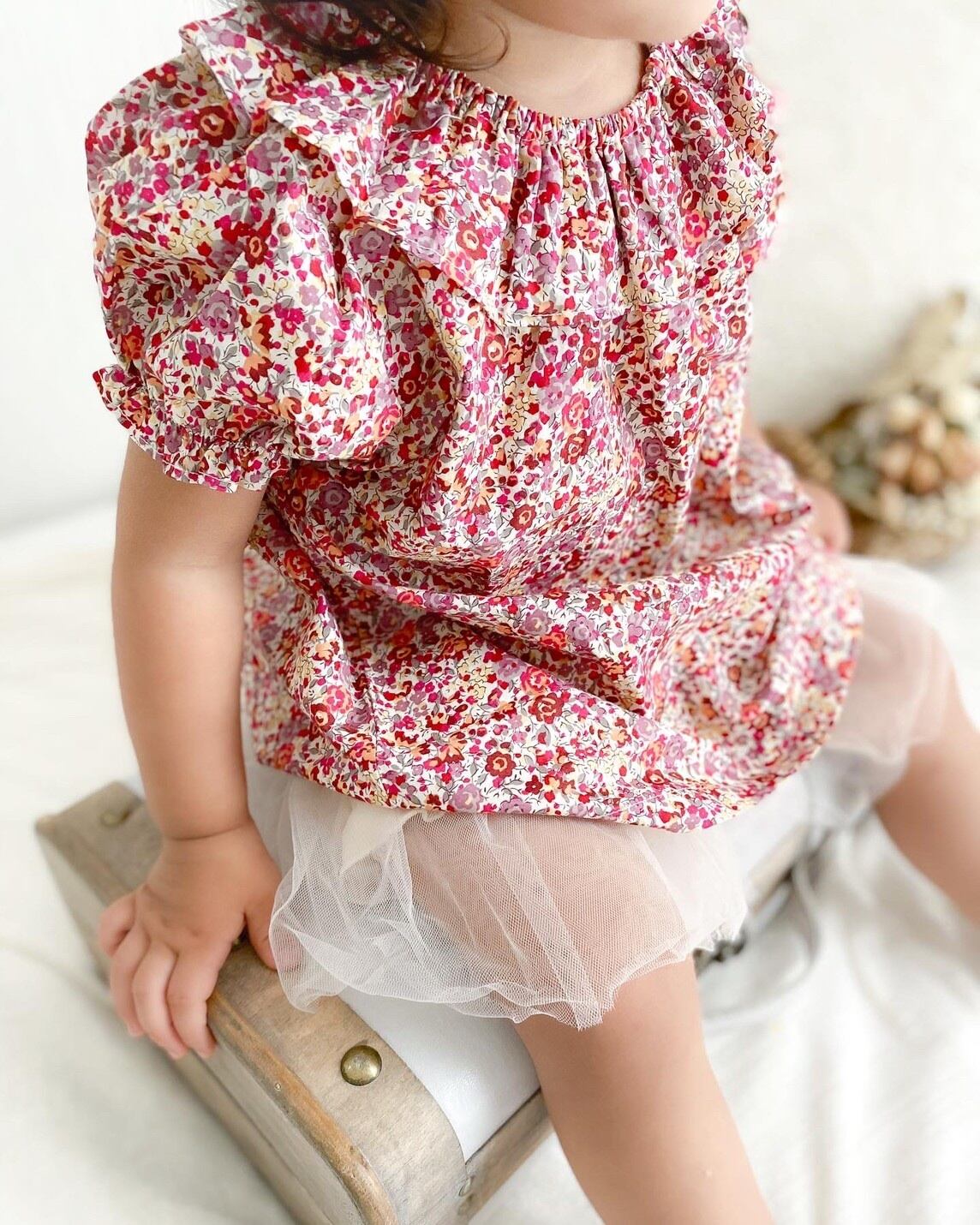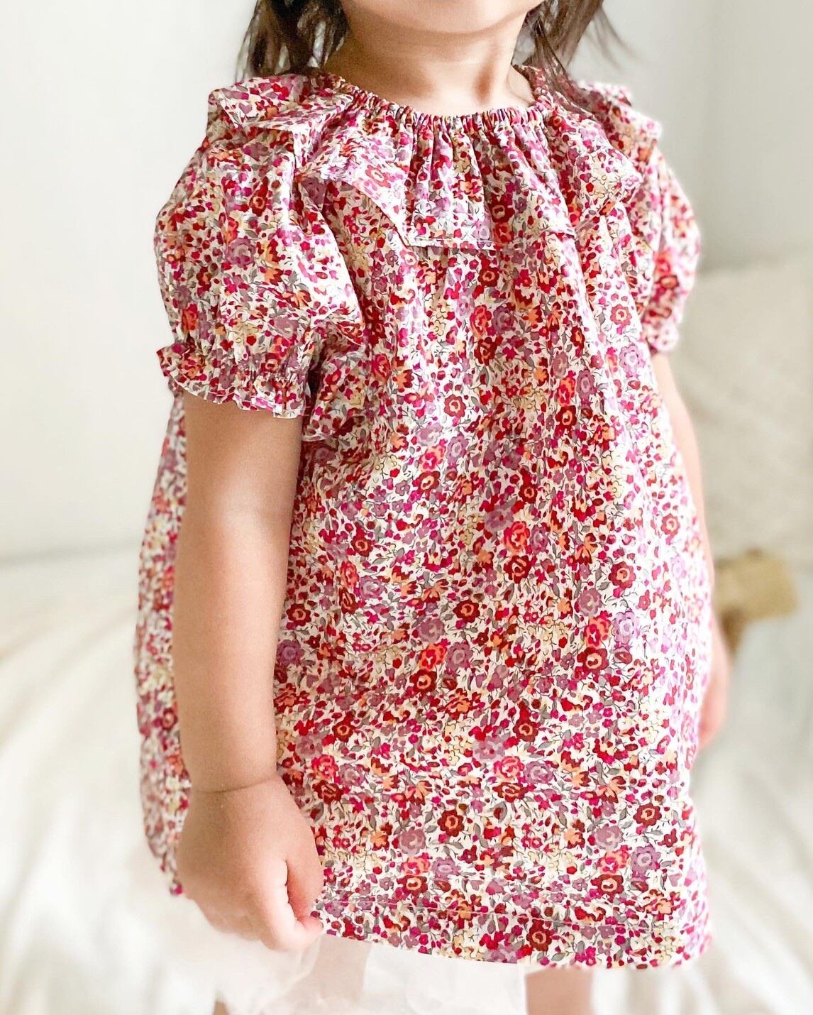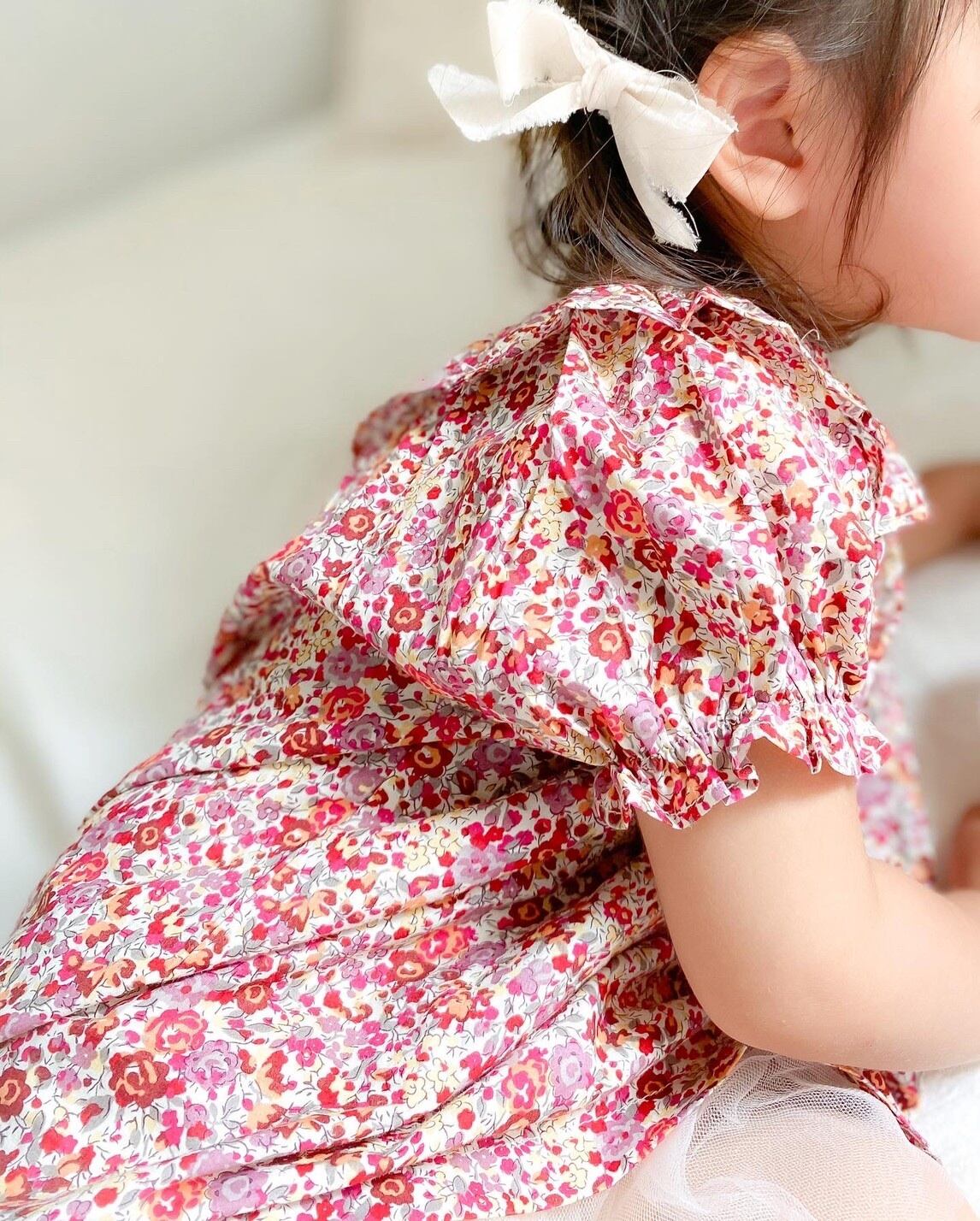小花柄、襟フリルとても可愛いらしい一枚です。