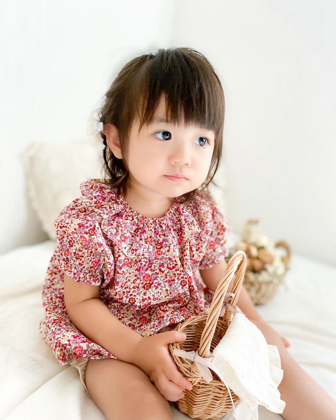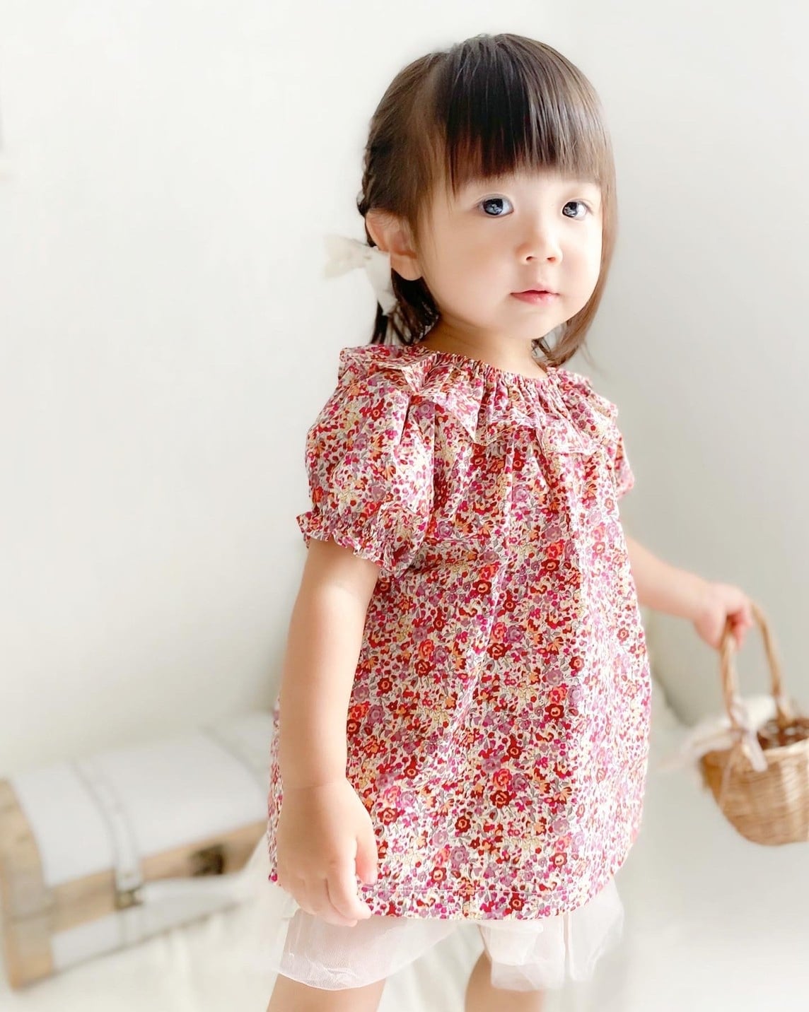 【即納】小花柄 襟フリル ブラウス 80 90 100 110 120 130