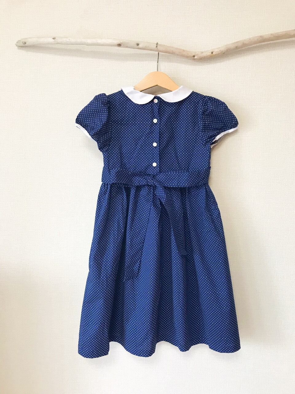 【即納】100 110cm セール ネイビー ドット スモッキング ワンピース