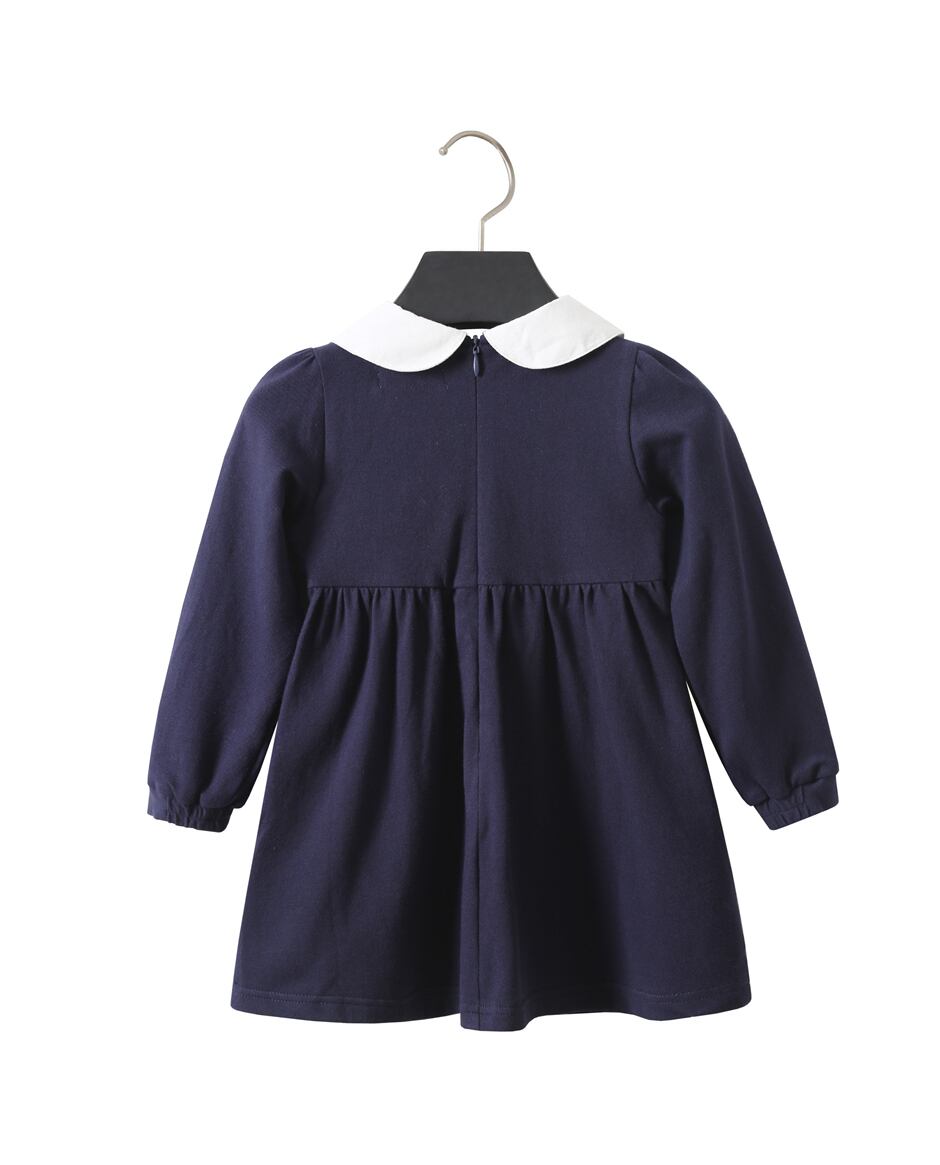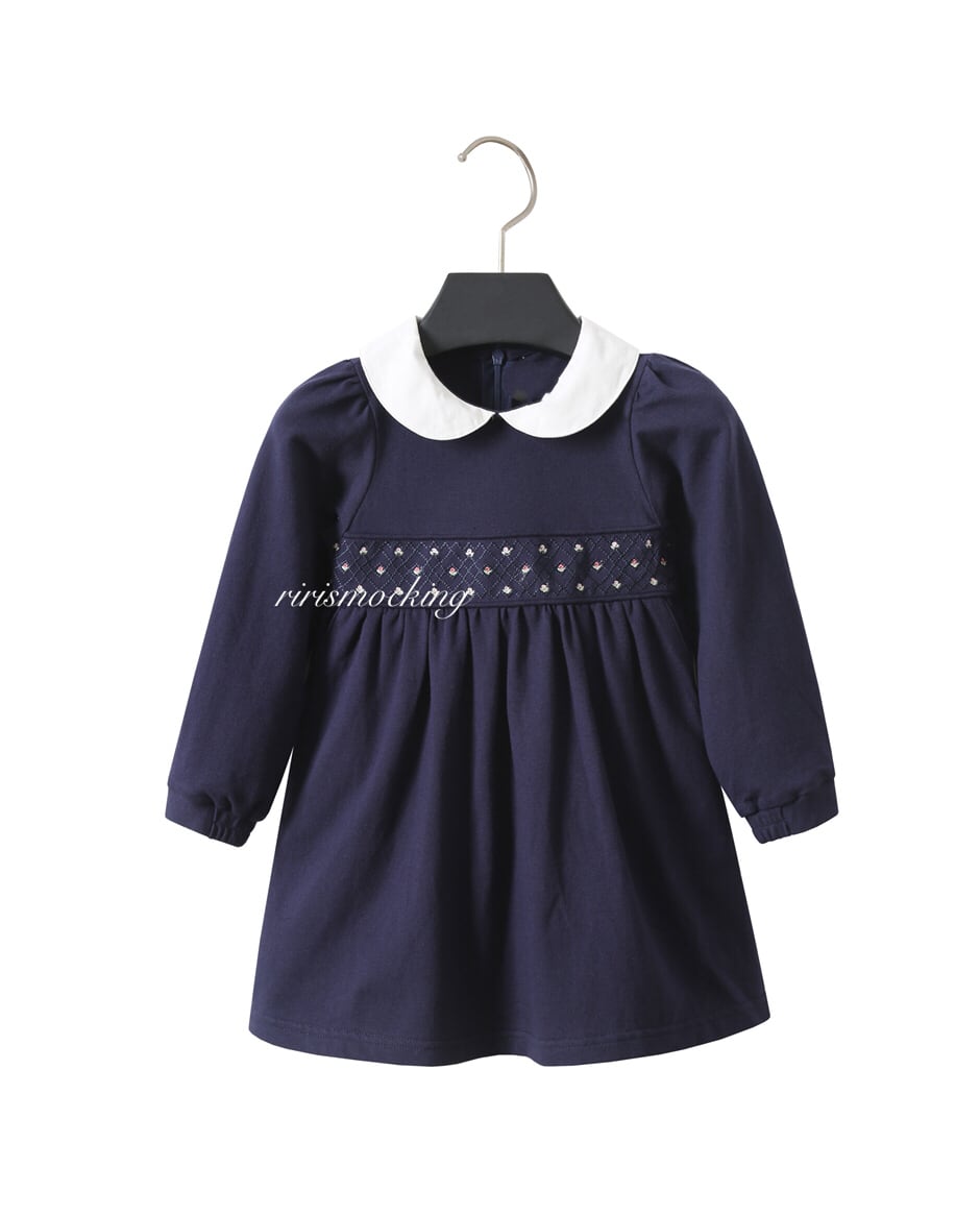 【即納】(85〜130cm)定番 ネイビー 長袖 鹿の子 花刺繍 ワンピース 幼稚園 保育園 面接 見学
