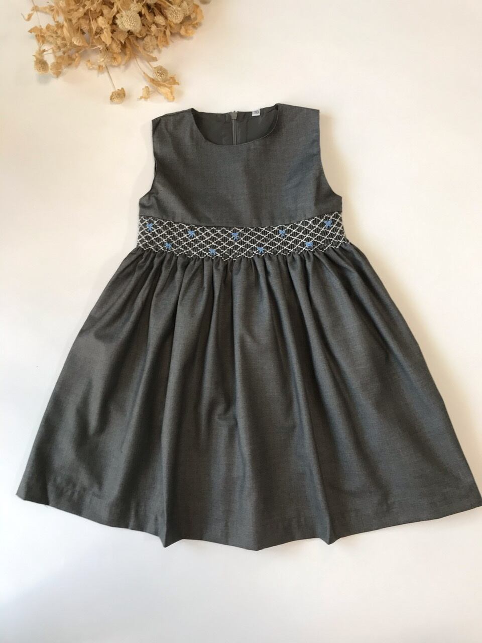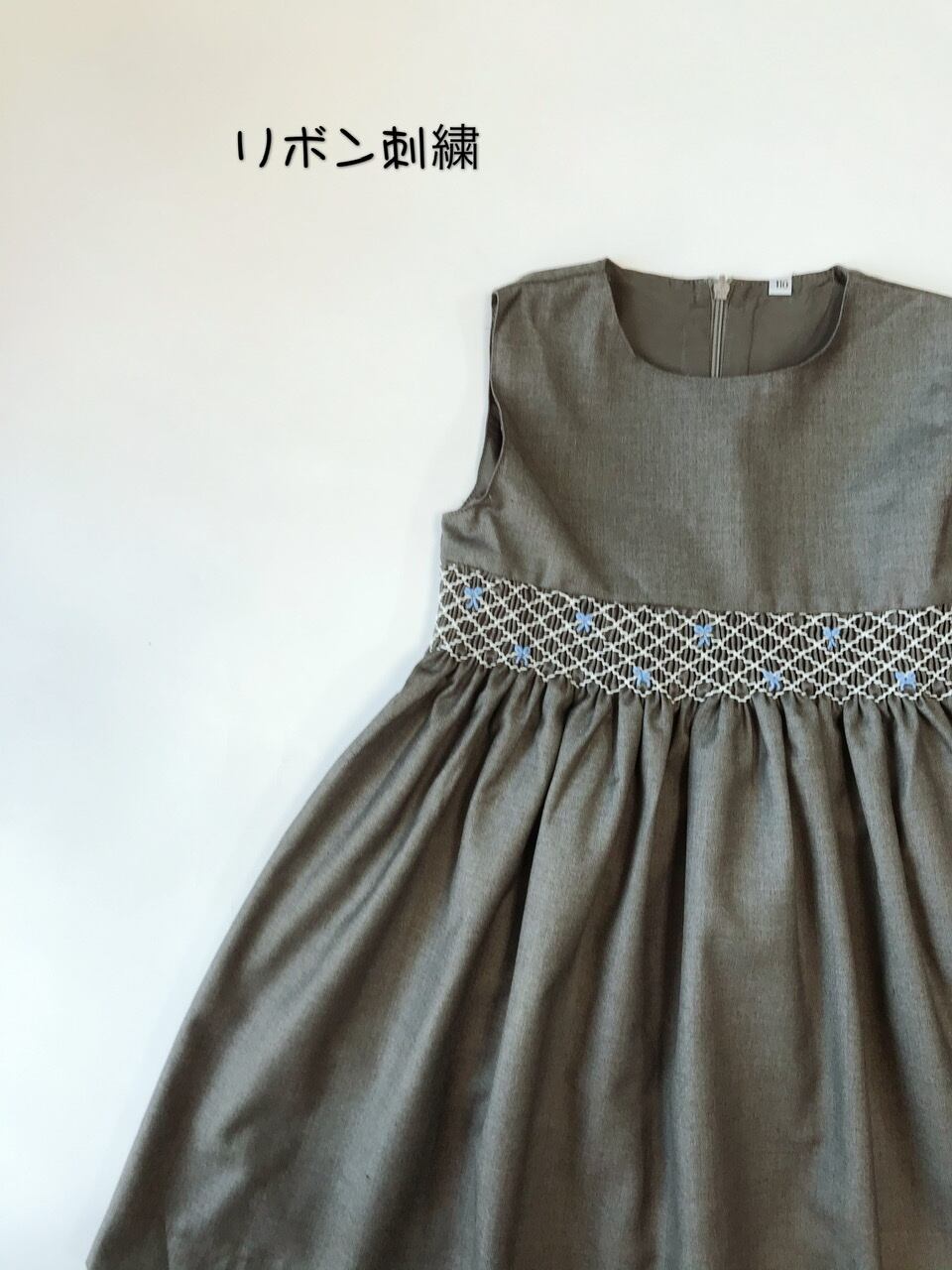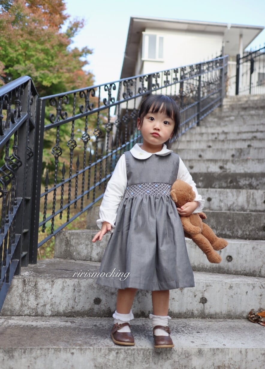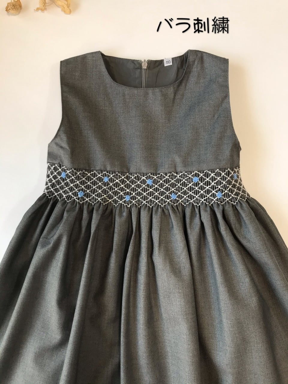 新品 グレー スモッキング 刺繍 ジャンパースカート