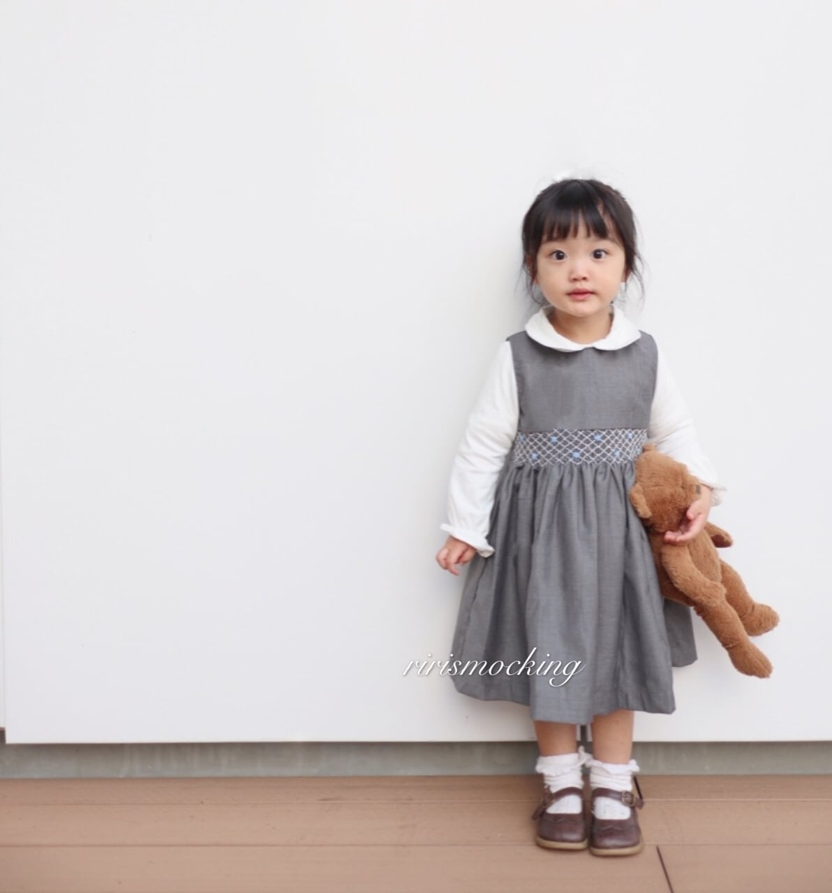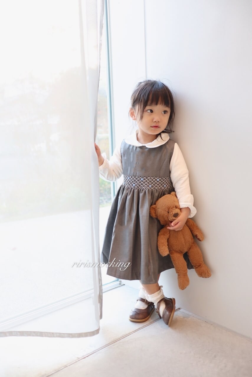 【即納】新品 グレー スモッキング ジャンパースカート お受験 面接 90 100 110 120 130