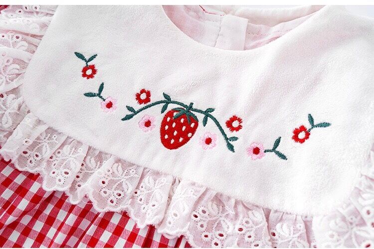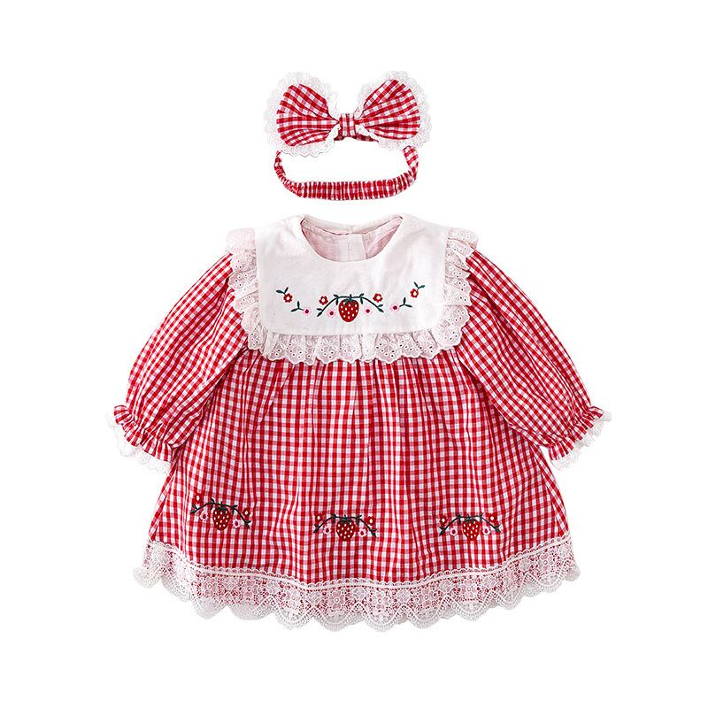新品 長袖 いちご刺繍 ヘアバンド付き ワンピース
