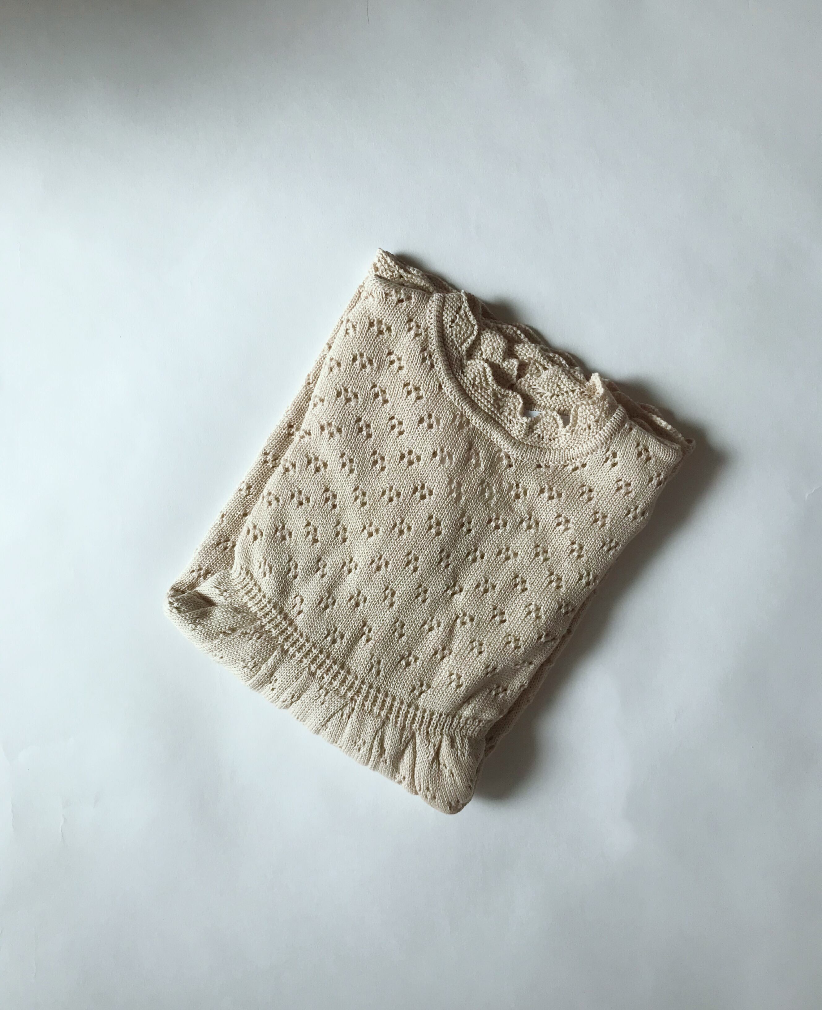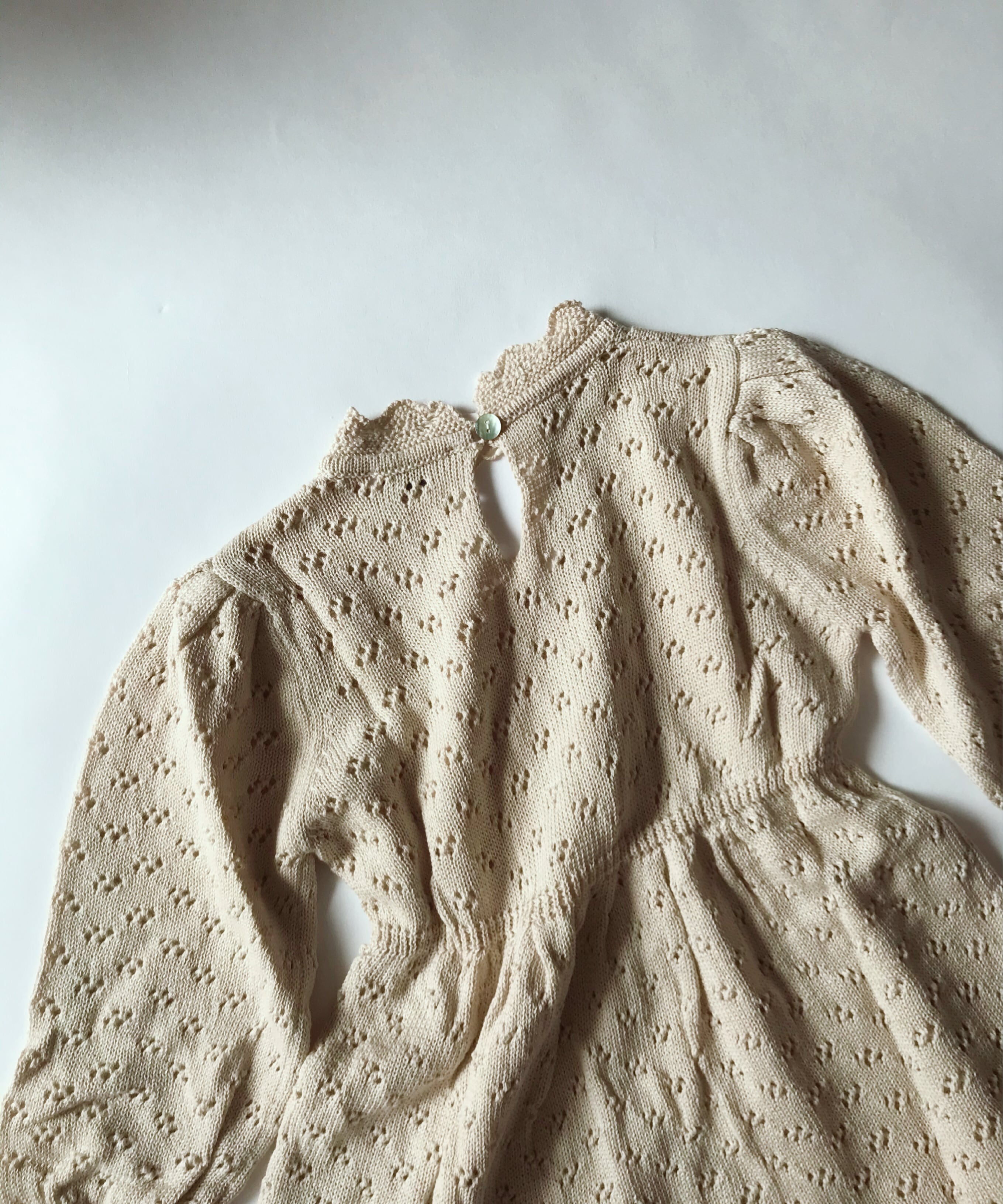 【即納】(80〜140cm)再入荷 透かし編み ニット ワンピース アイボリー 80 90 100 110 120 130 140