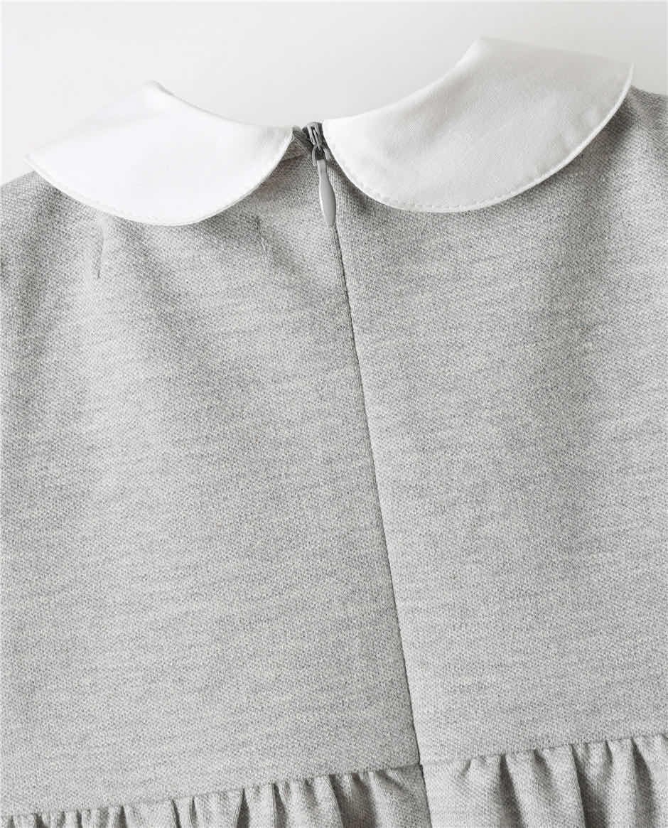 新品 グレー 白襟 長袖 花 刺繍 ワンピース