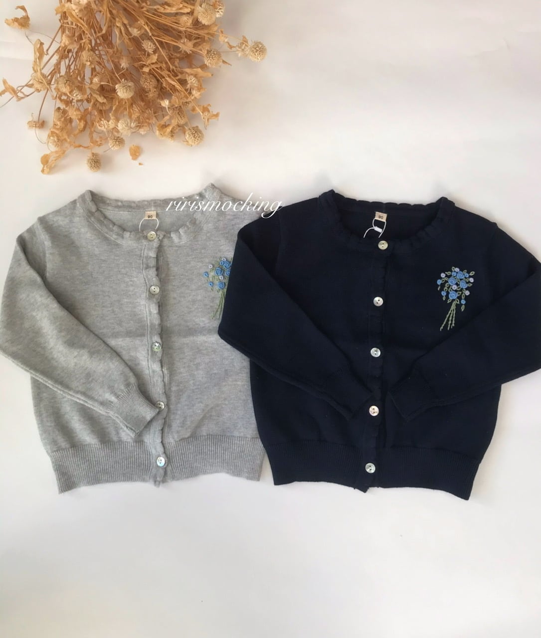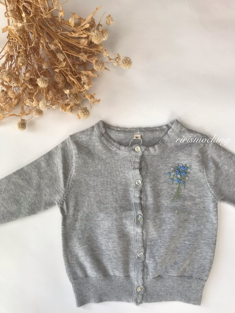 【即納】新作 ネイビー グレー 薔薇刺繍 カーディガン 90 100 110 120 130