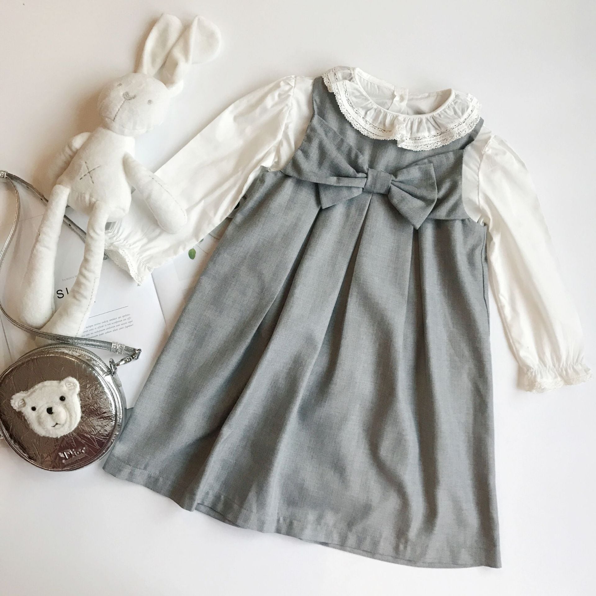 新品 リボン グレー ジャンパースカート ワンピース (カーディガン 、ブラウス付きません)
