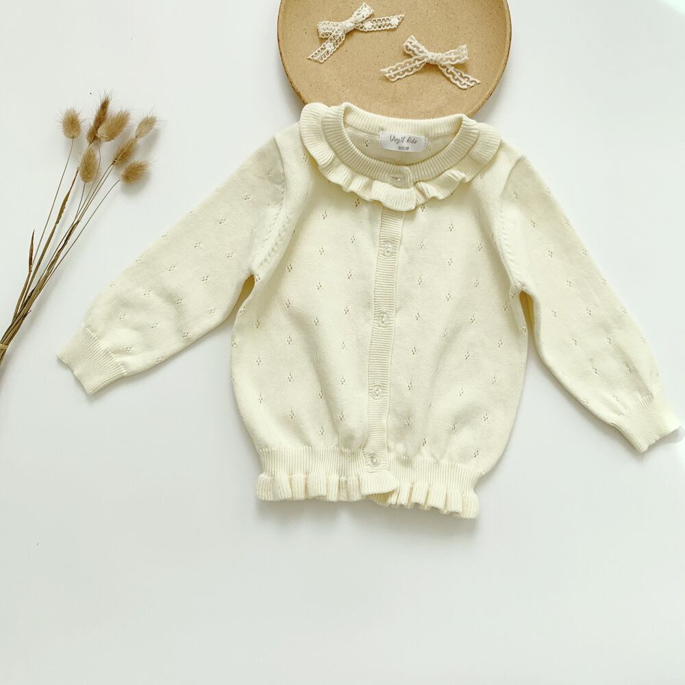 【即納】(80〜140cm)フリル 二色 カーディガン 80 90 100 110 120 130 140