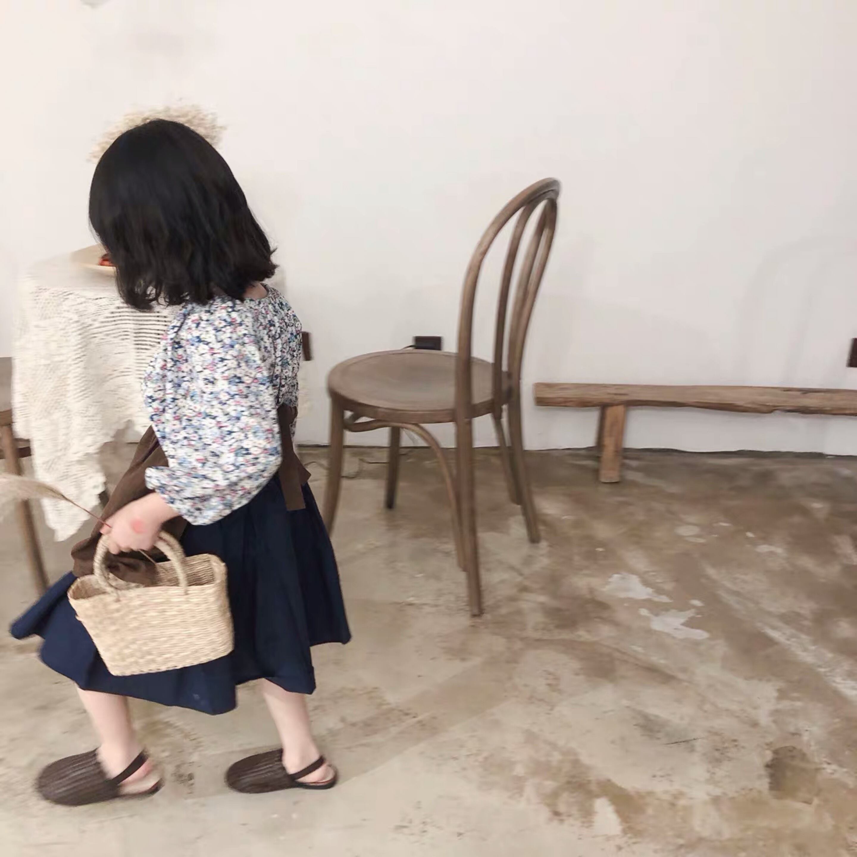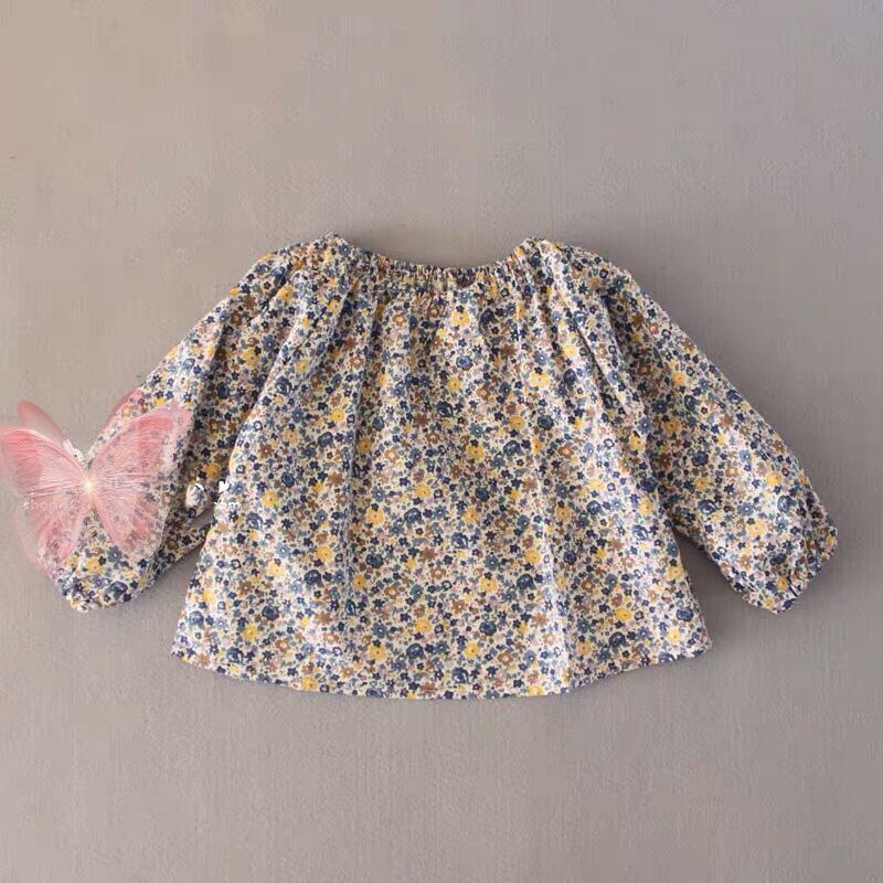 【即納】新品 二色 ぽわん袖 小花柄 ブラウス スモック 80 90 100 110 120 130