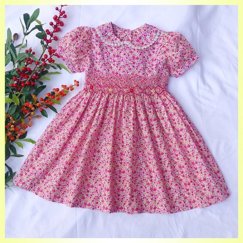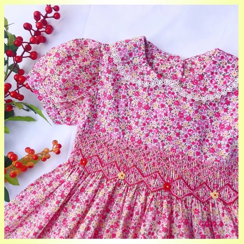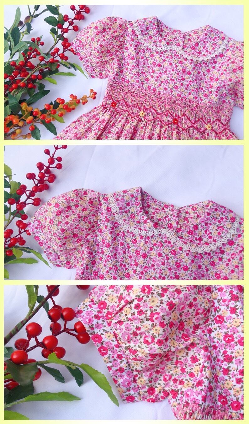 【即納】新作 ピンク 小花柄 スモッキング ワンピース 95 100 110 120 130