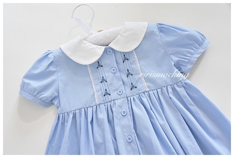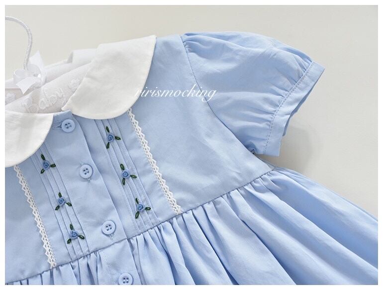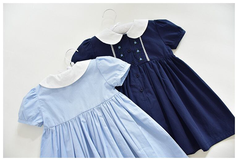 【即納】(90〜140)白襟 前ボタン 薔薇刺繍 2色 ワンピース 90 100 110 120 130 140 お教室 お稽古