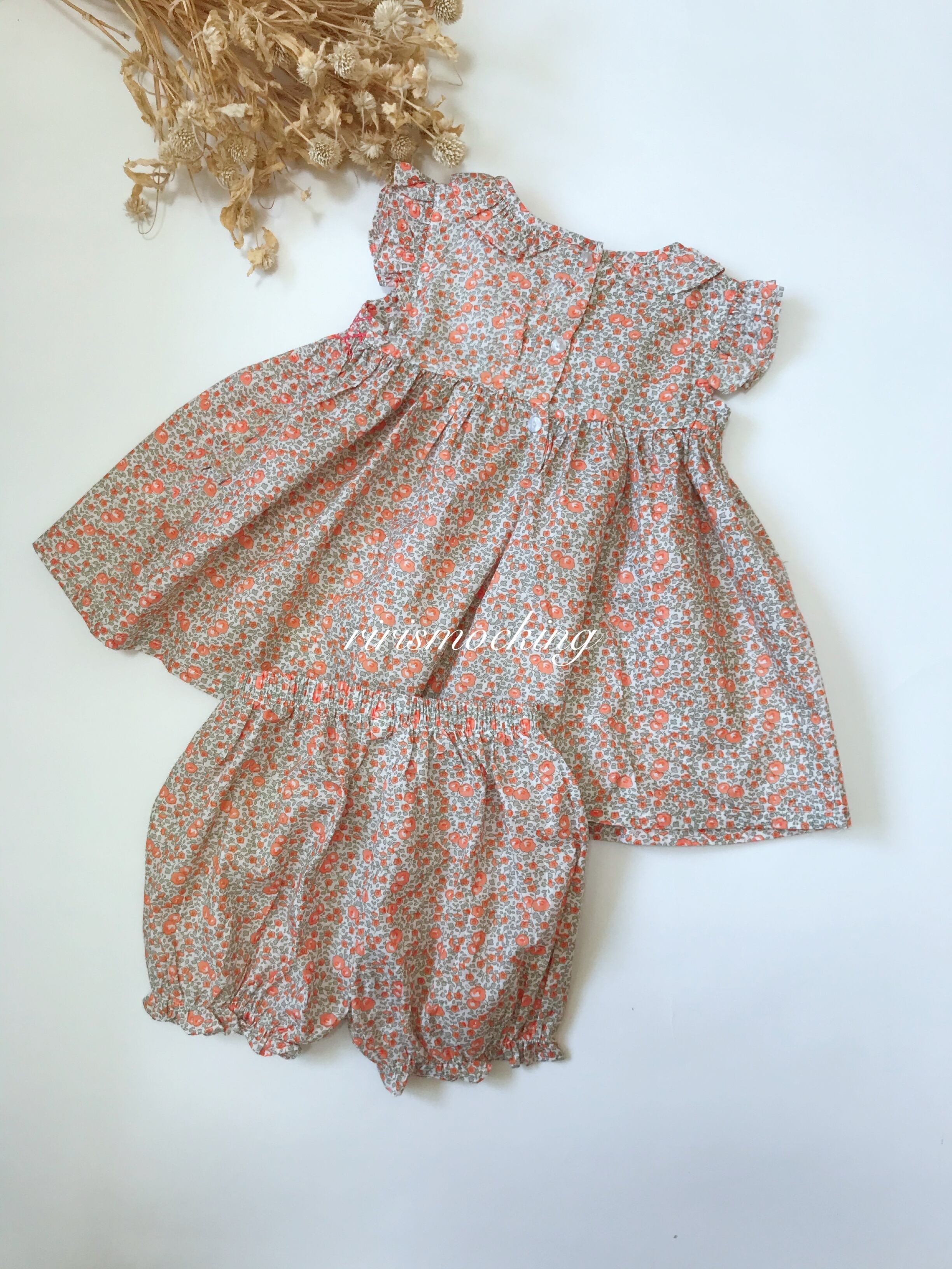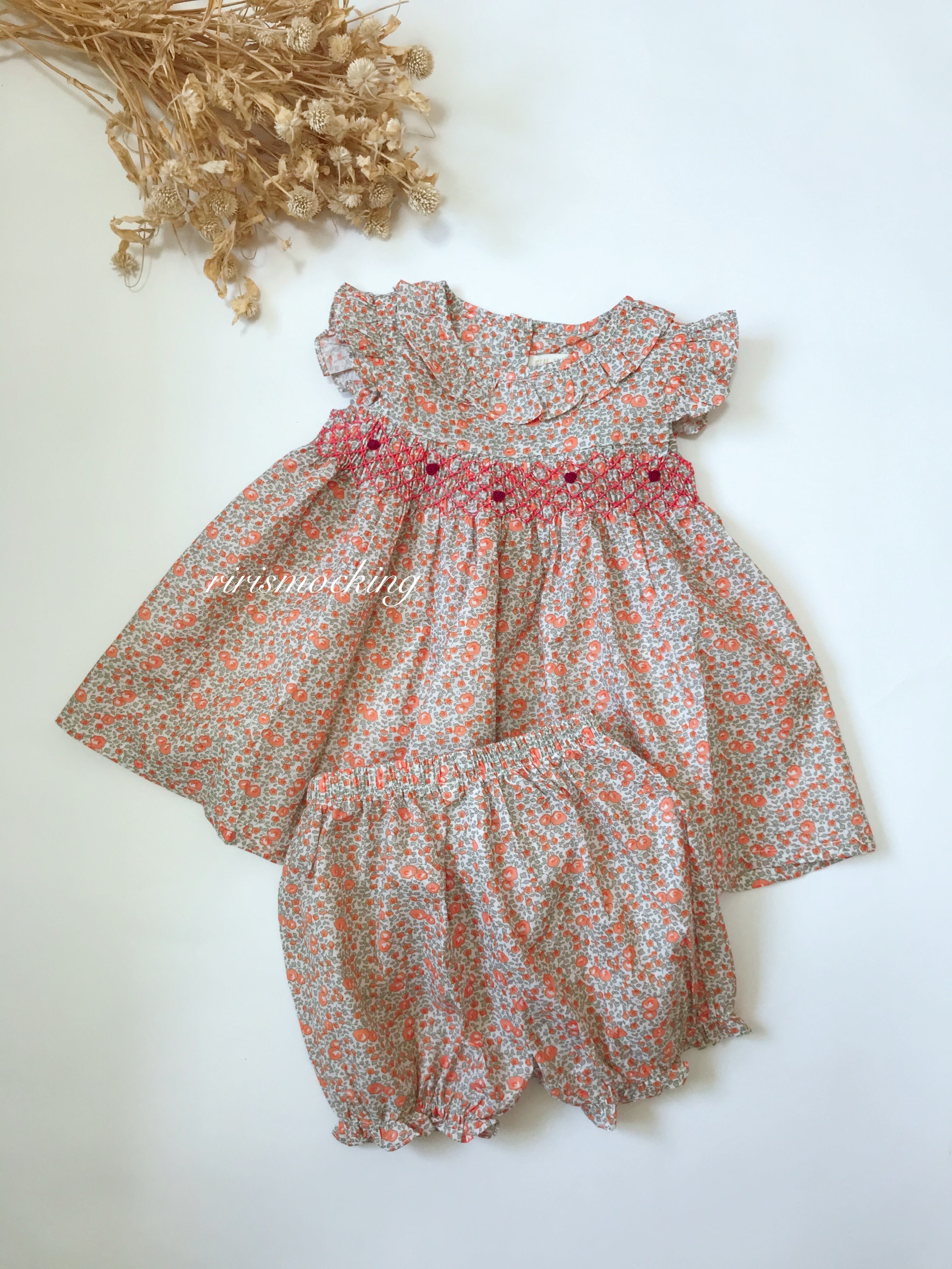 【即納】85 100再入荷 フリル襟 スモッキング ワンピース かぼちゃパンツ セットアップ 75 80 90 95
