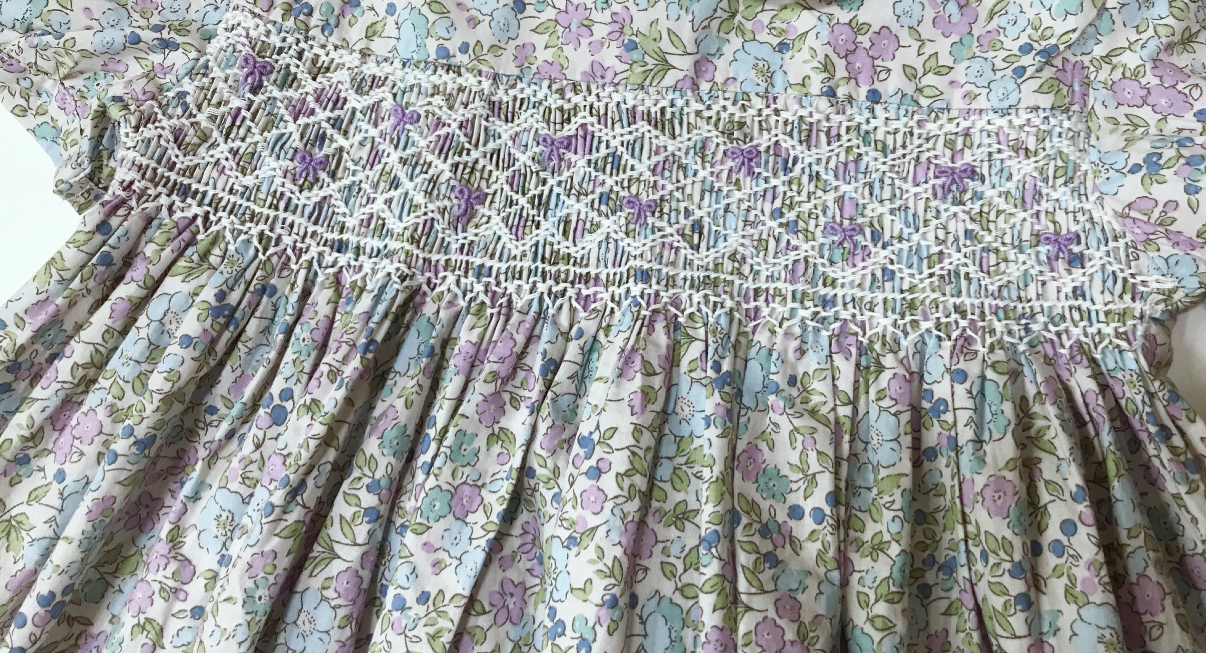 手刺繍のスモッキング刺繍とリボン刺繍とても素敵です。