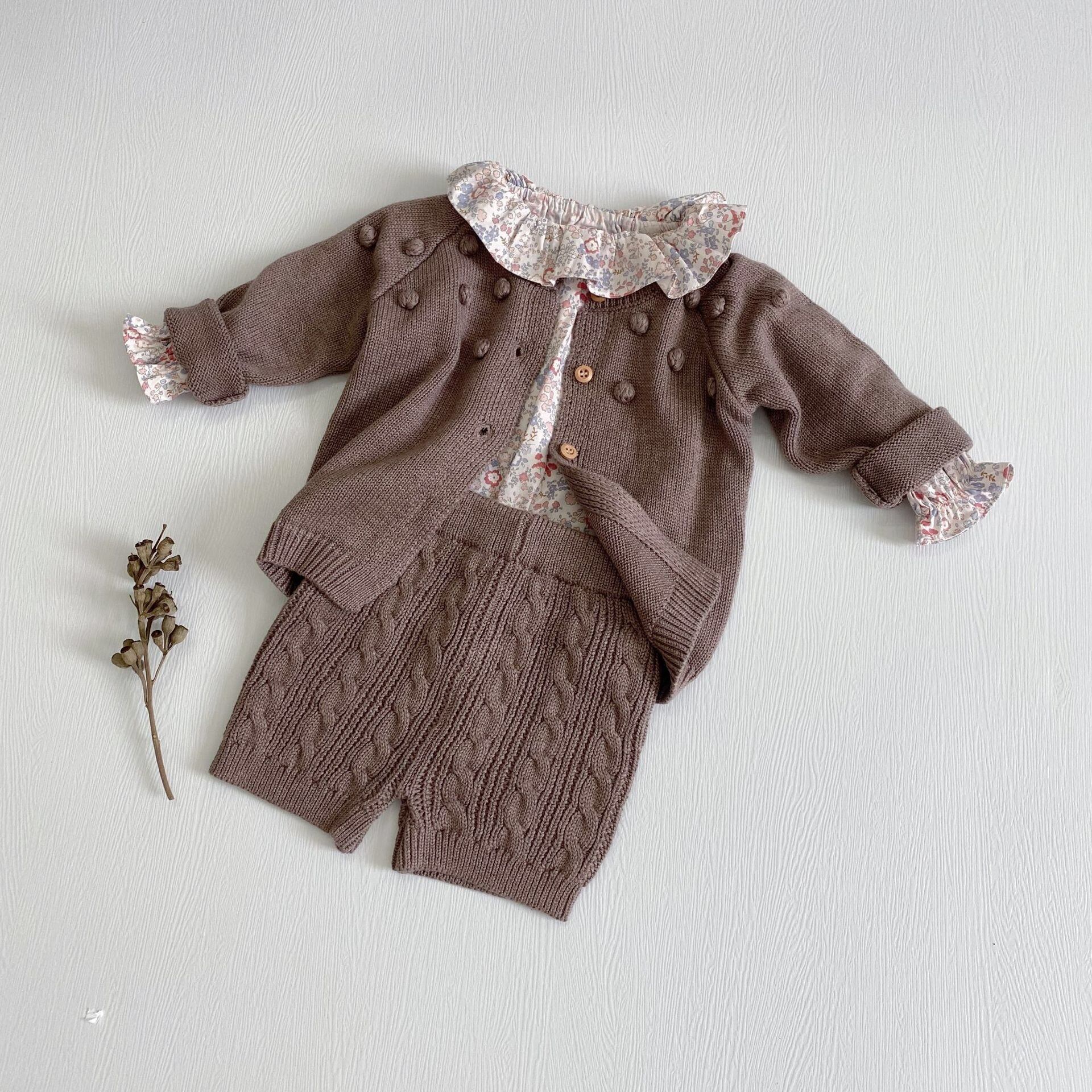 【即納】(80〜110cm)ポンポン付き ケーブル 男女兼用 ニット セットアップ