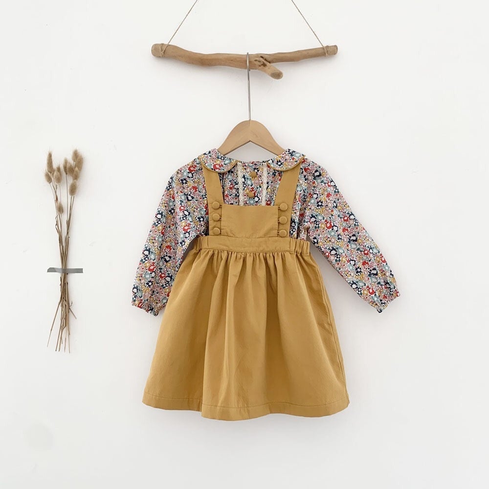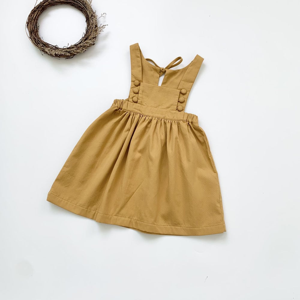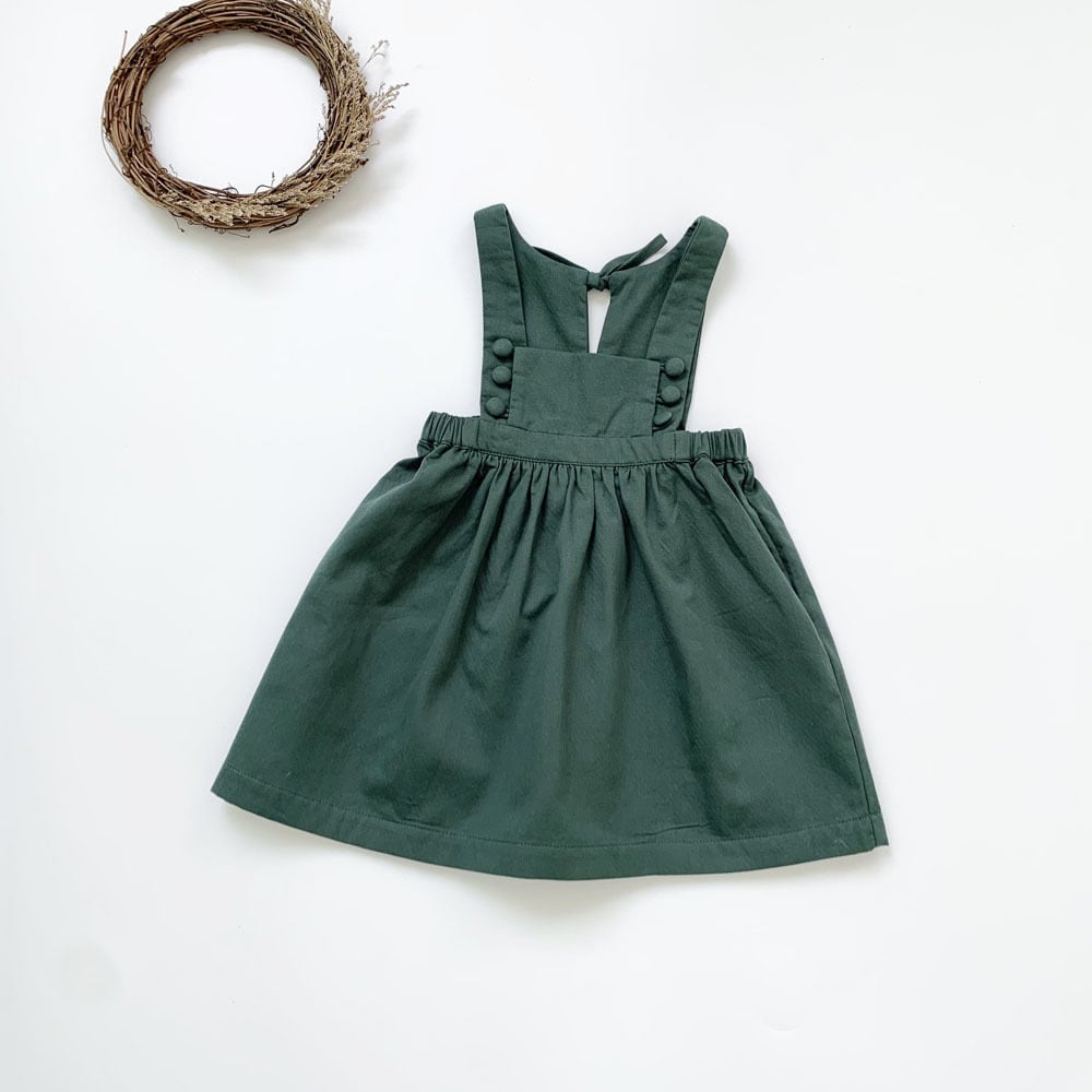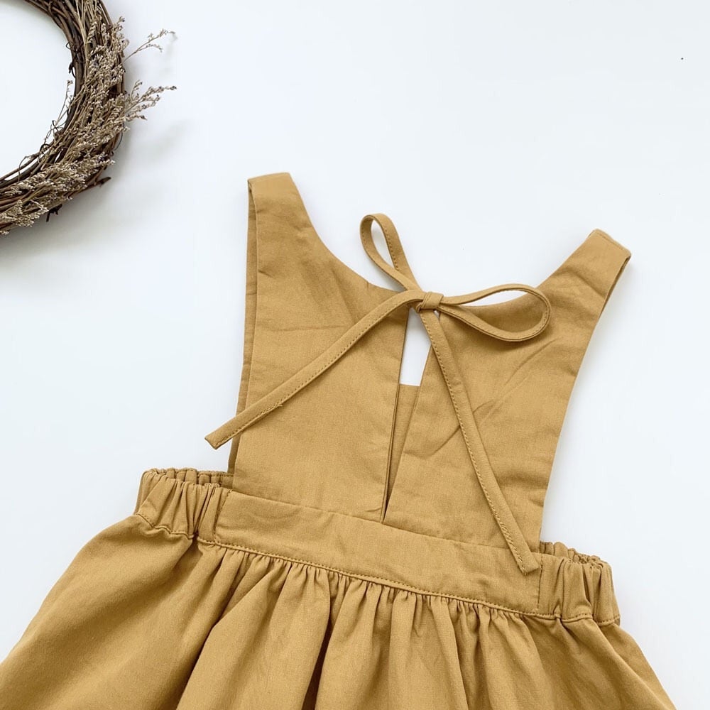 ★新品 マスタード グリーン コットン エプロン ジャンパースカート