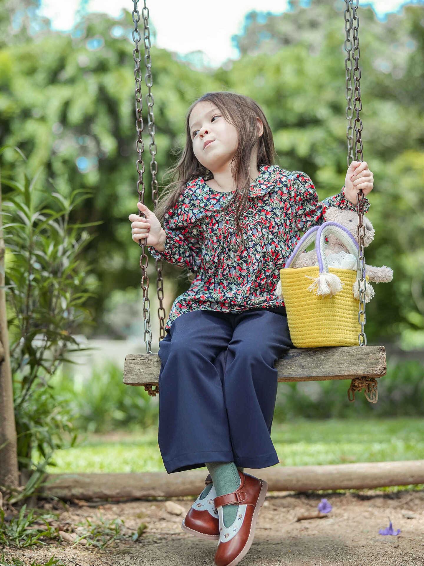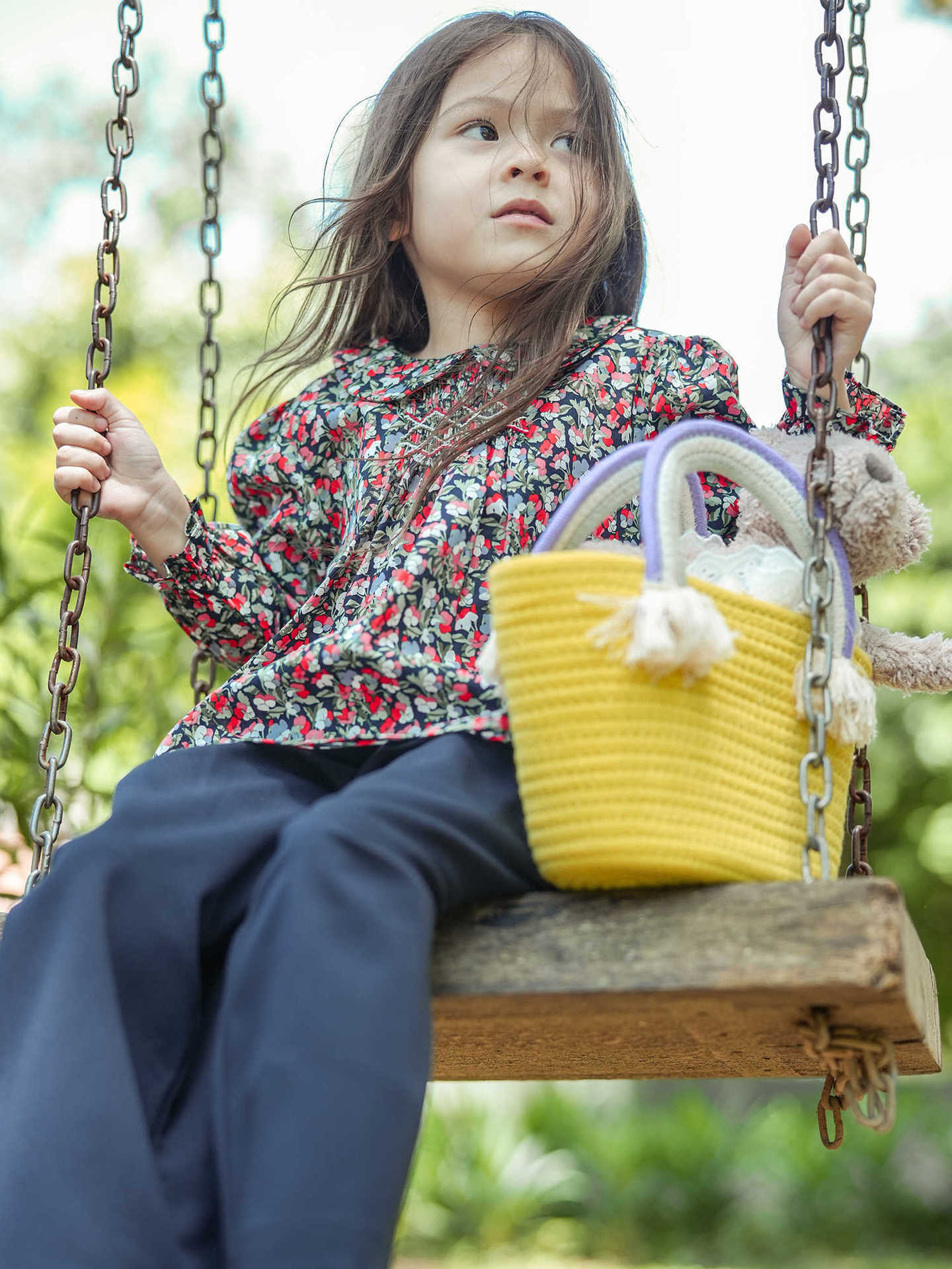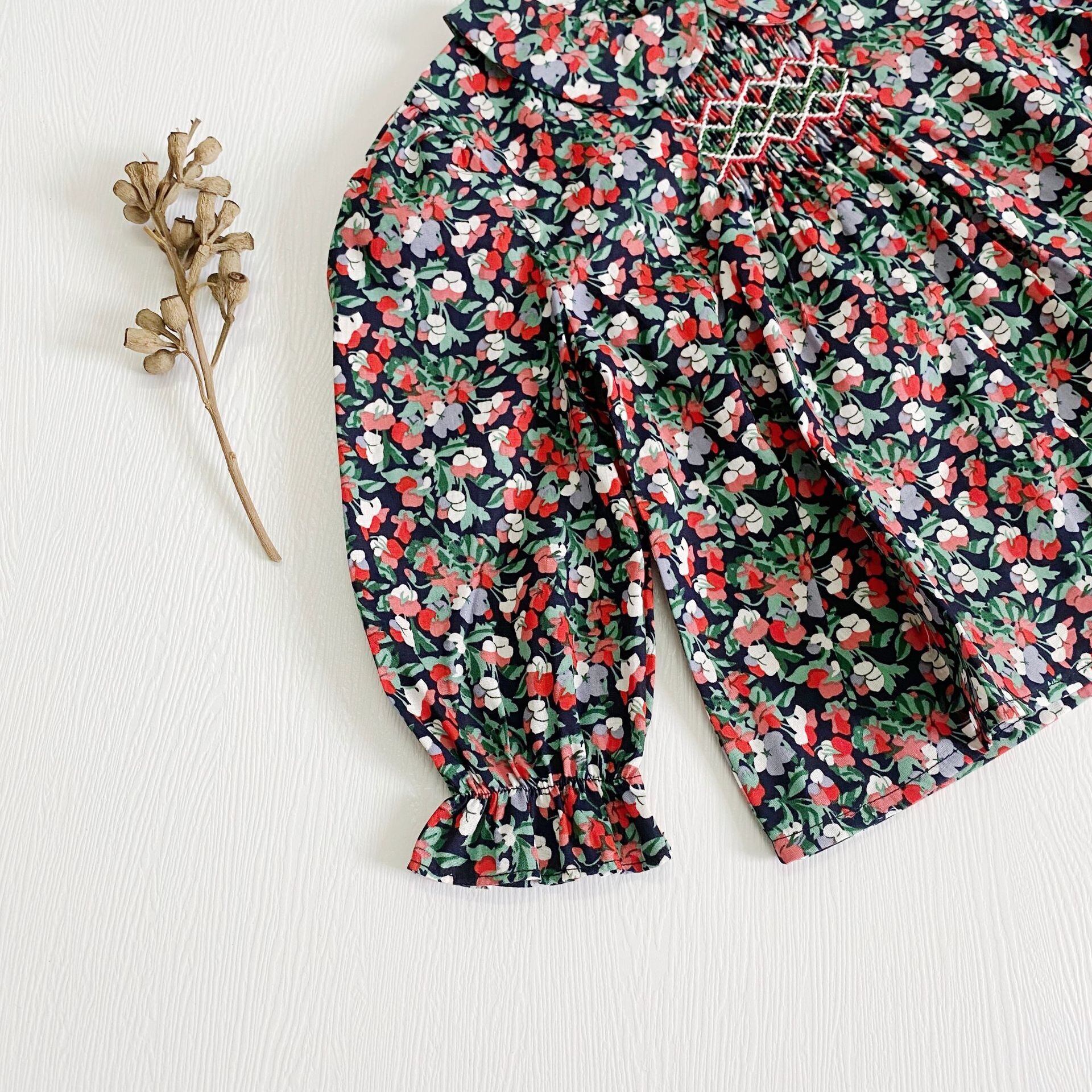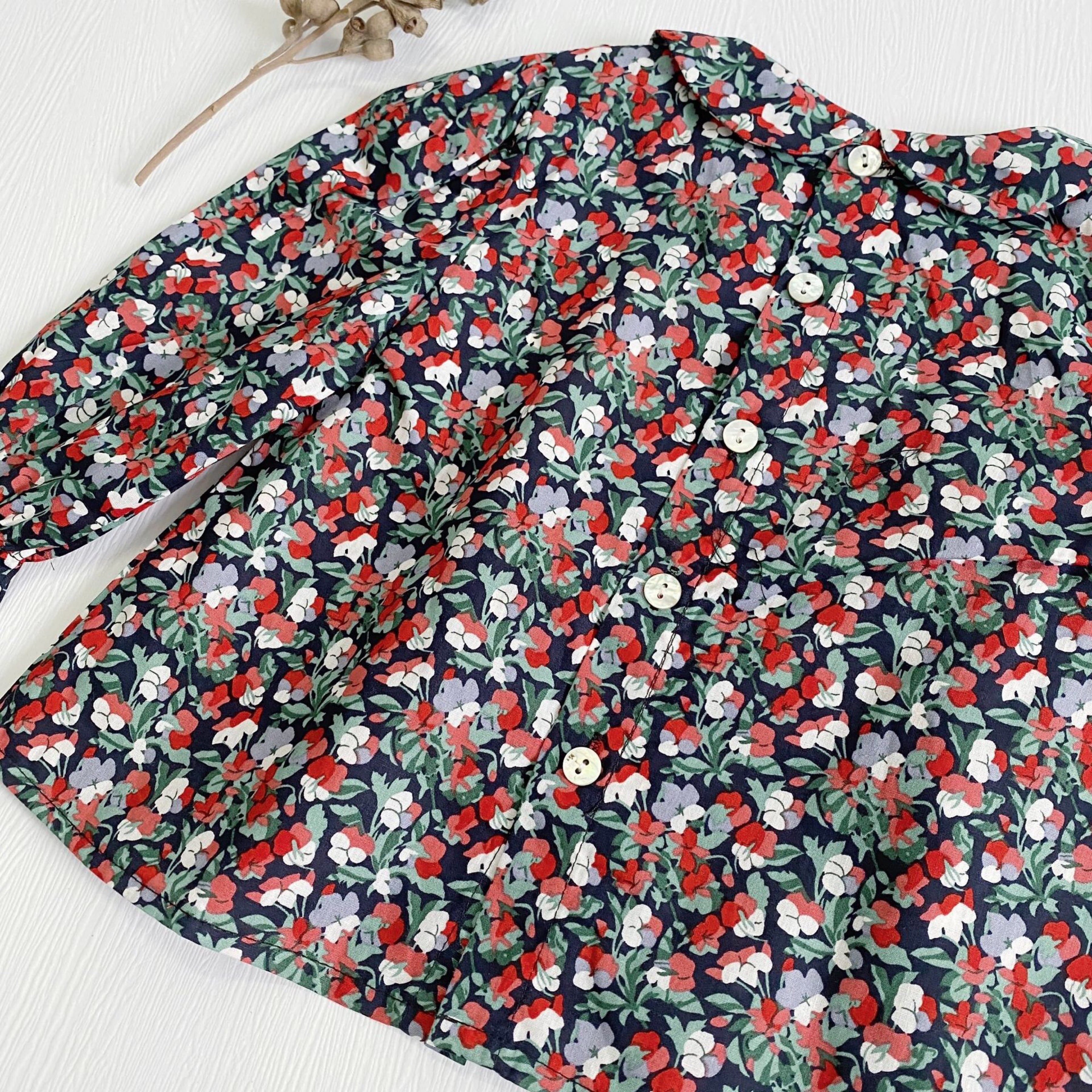 【即納】(80〜120cm)襟付き 2色 小花柄 スモッキング ブラウス