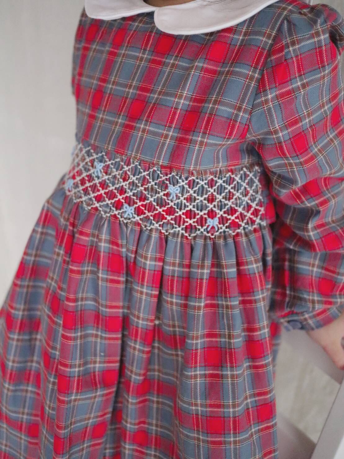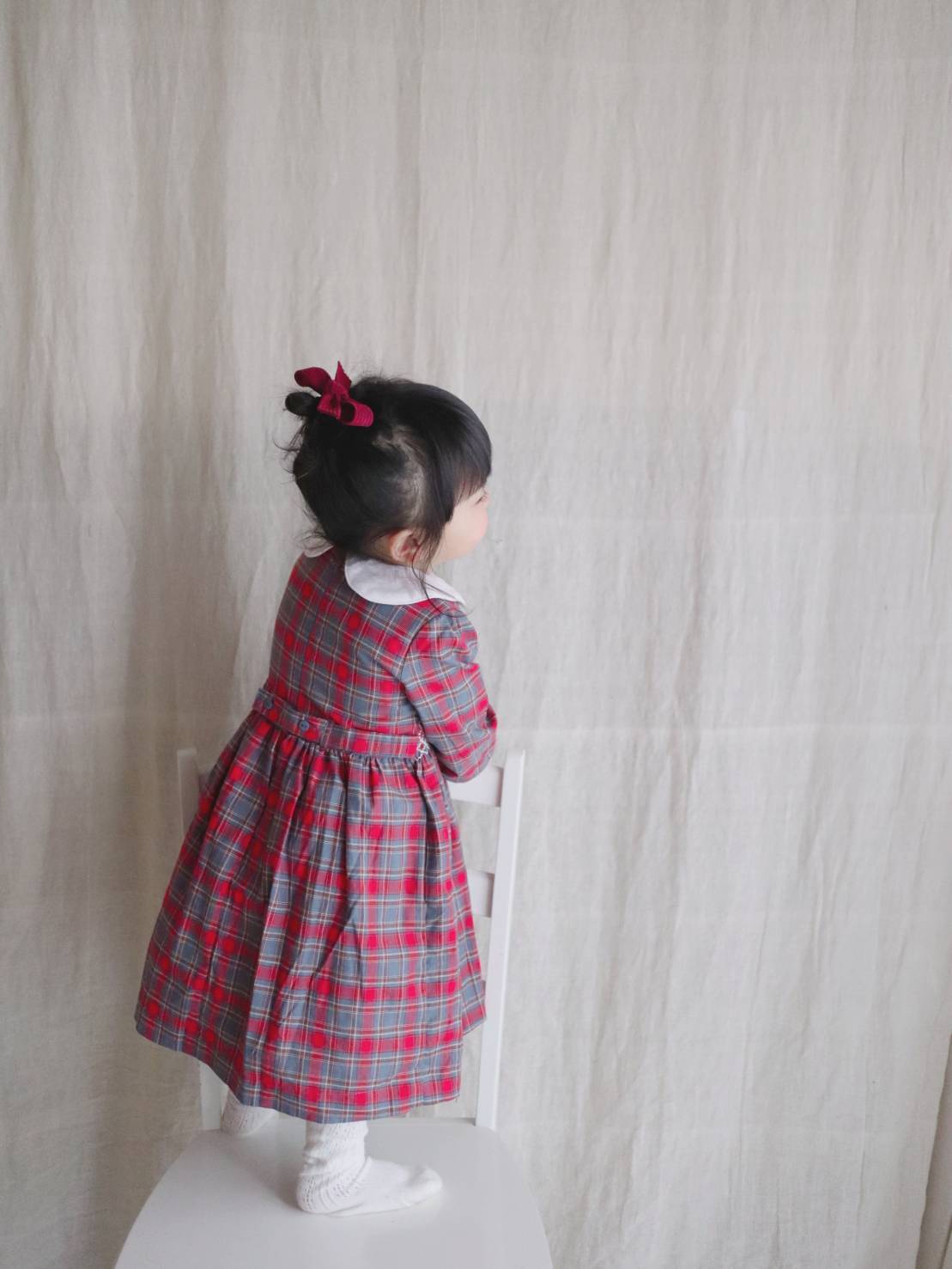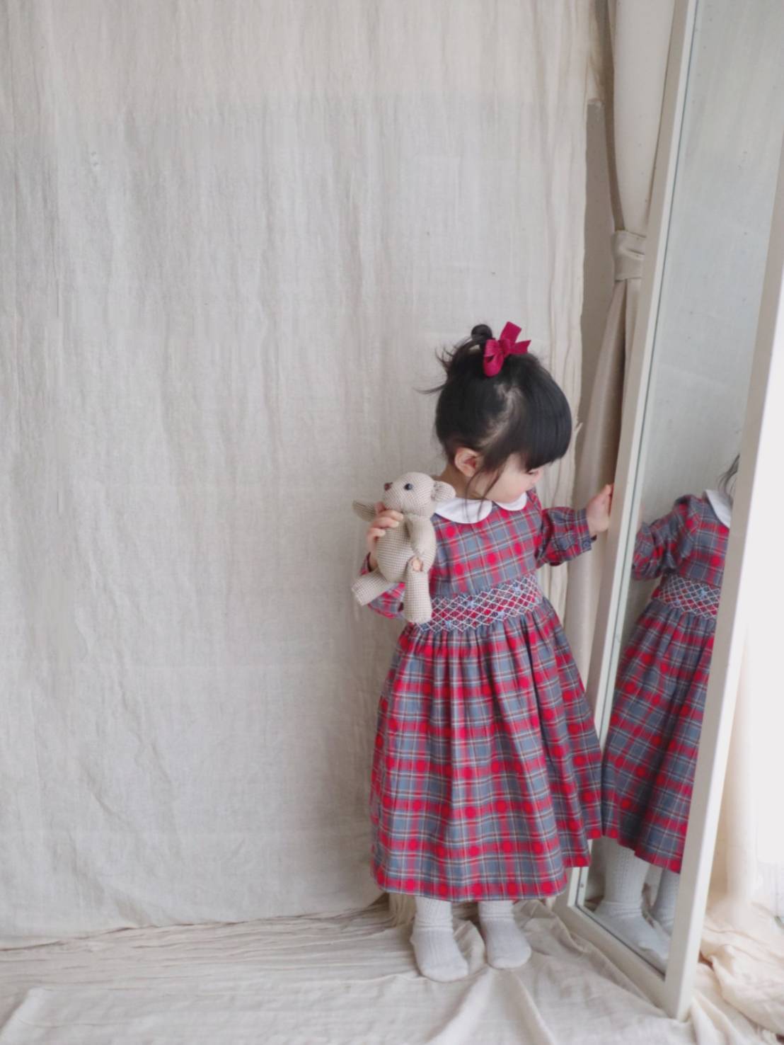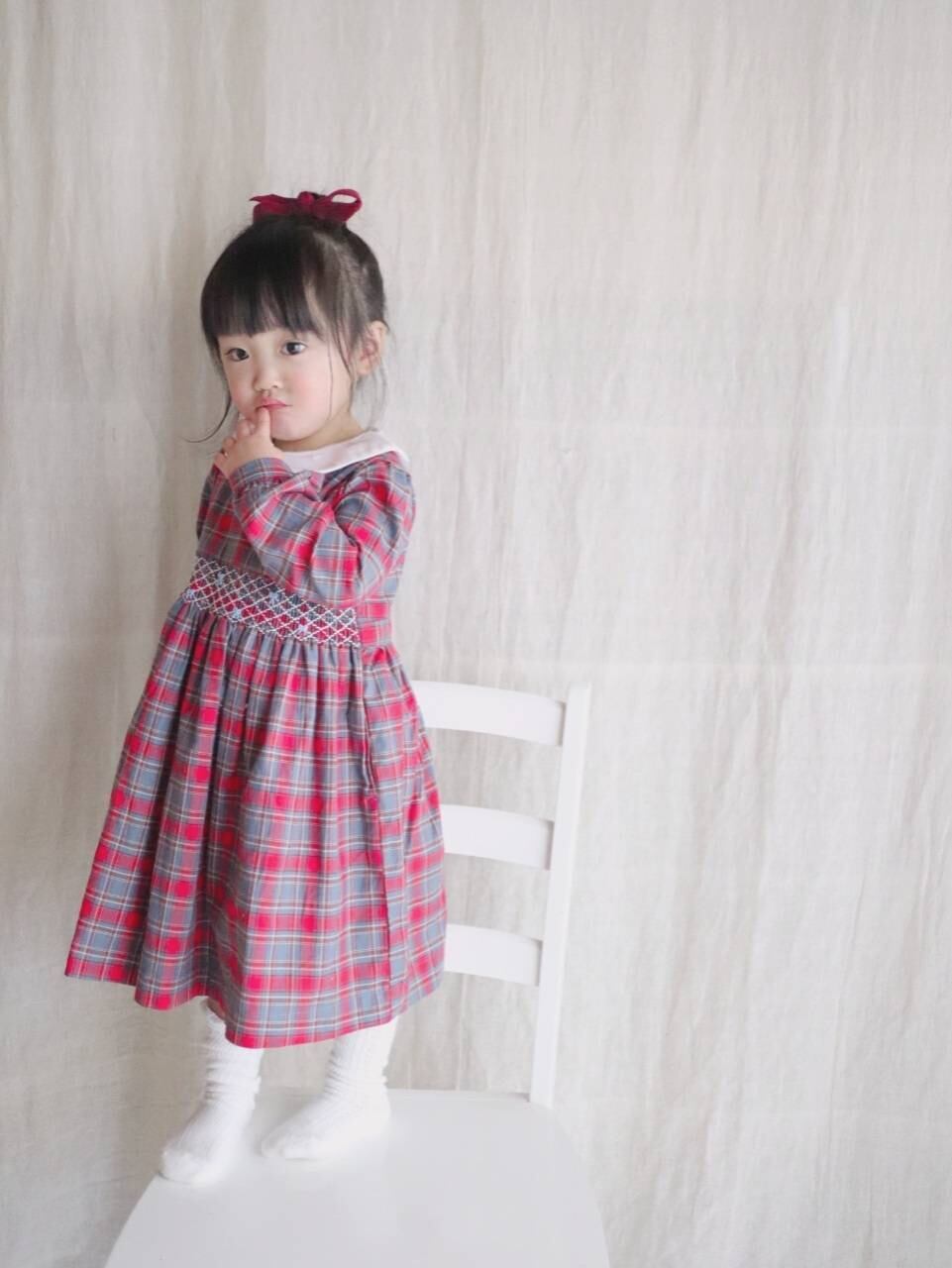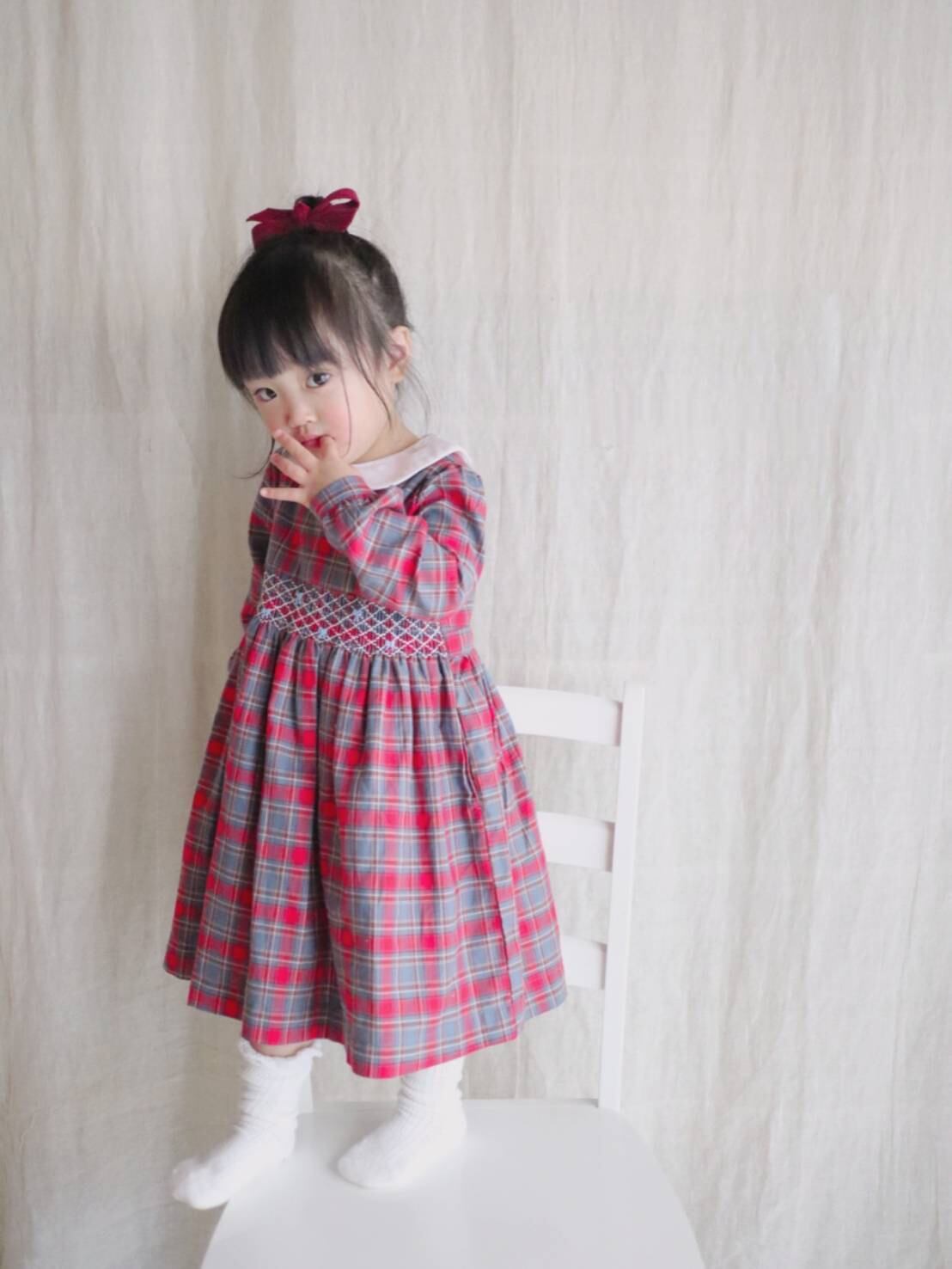 【即納】(90〜130cm)レッド チェック スモッキング ワンピース クリスマス