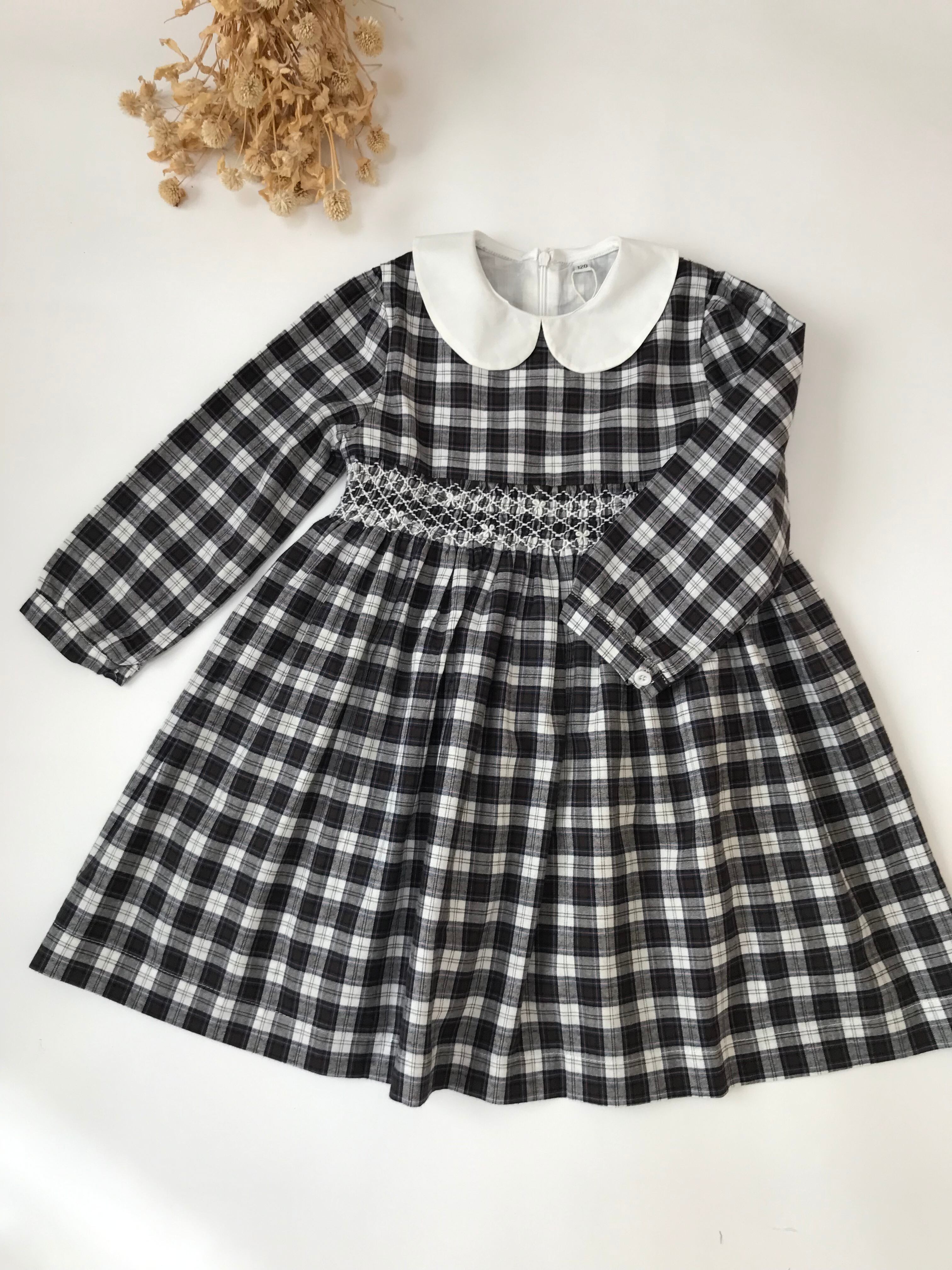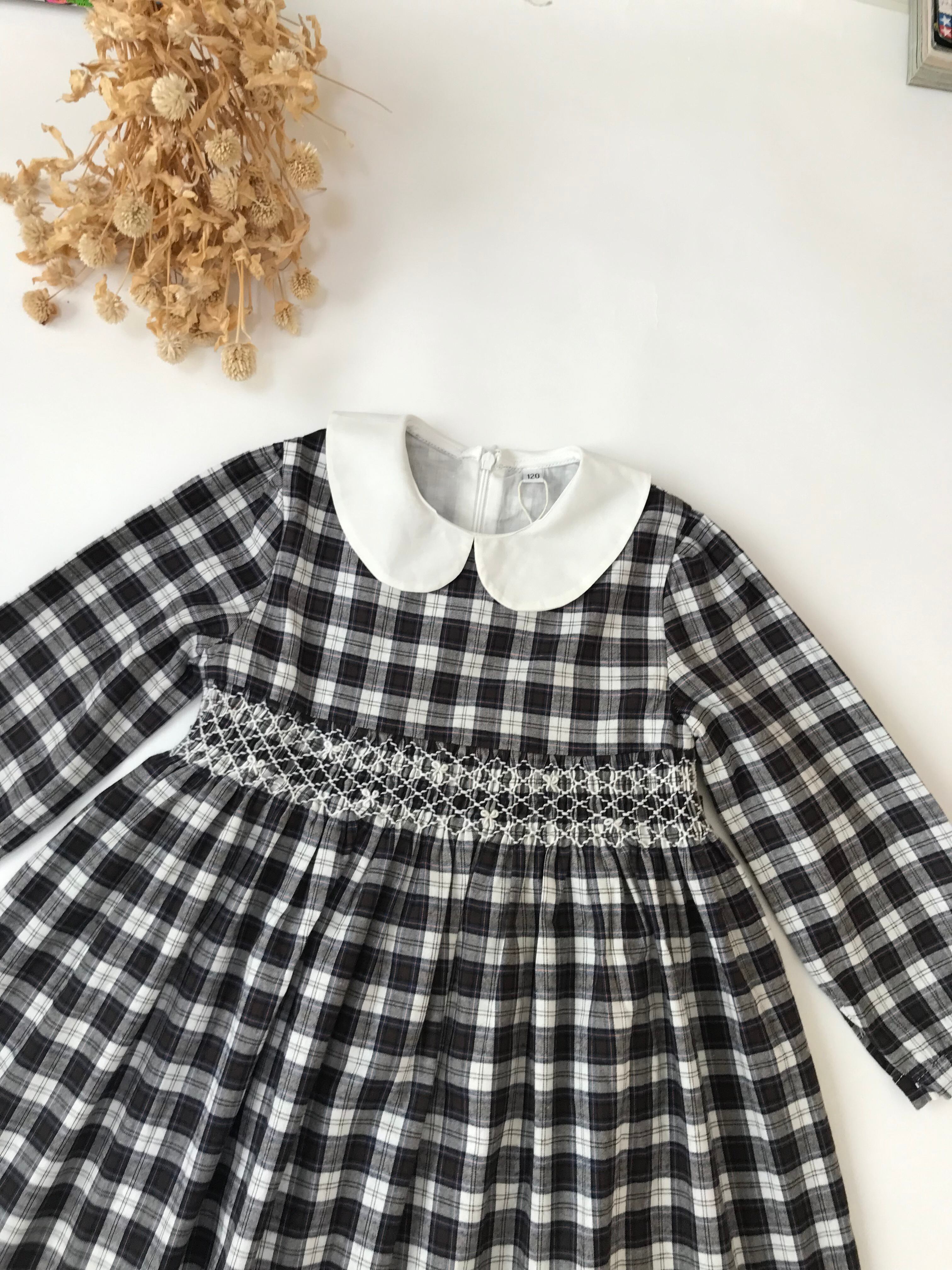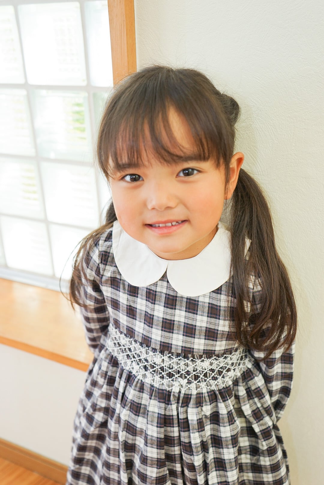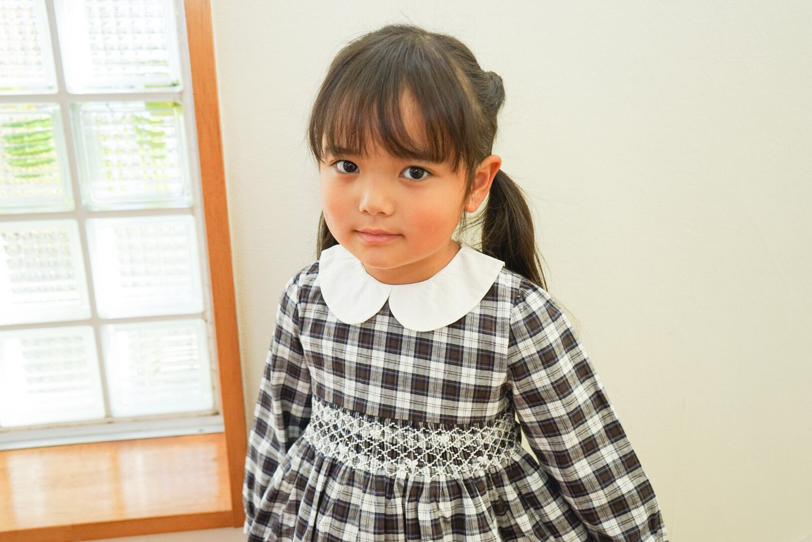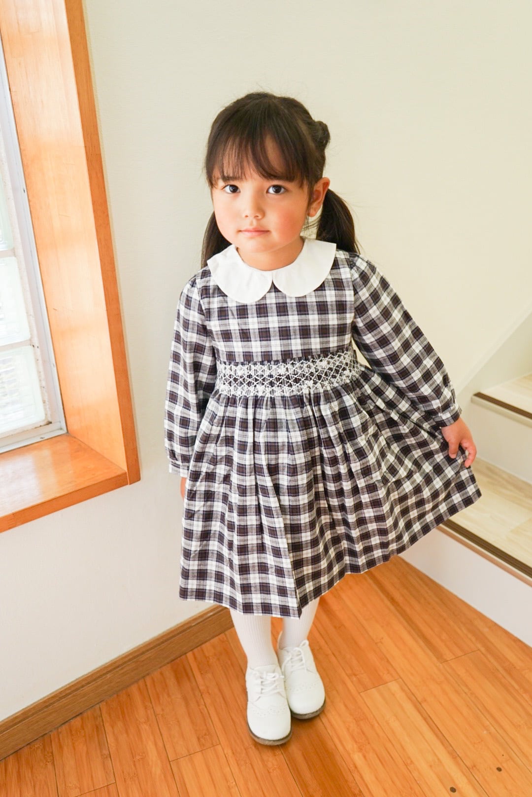 【即納】(90〜140cm) セール ネイビー チェック スモッキング ワンピース