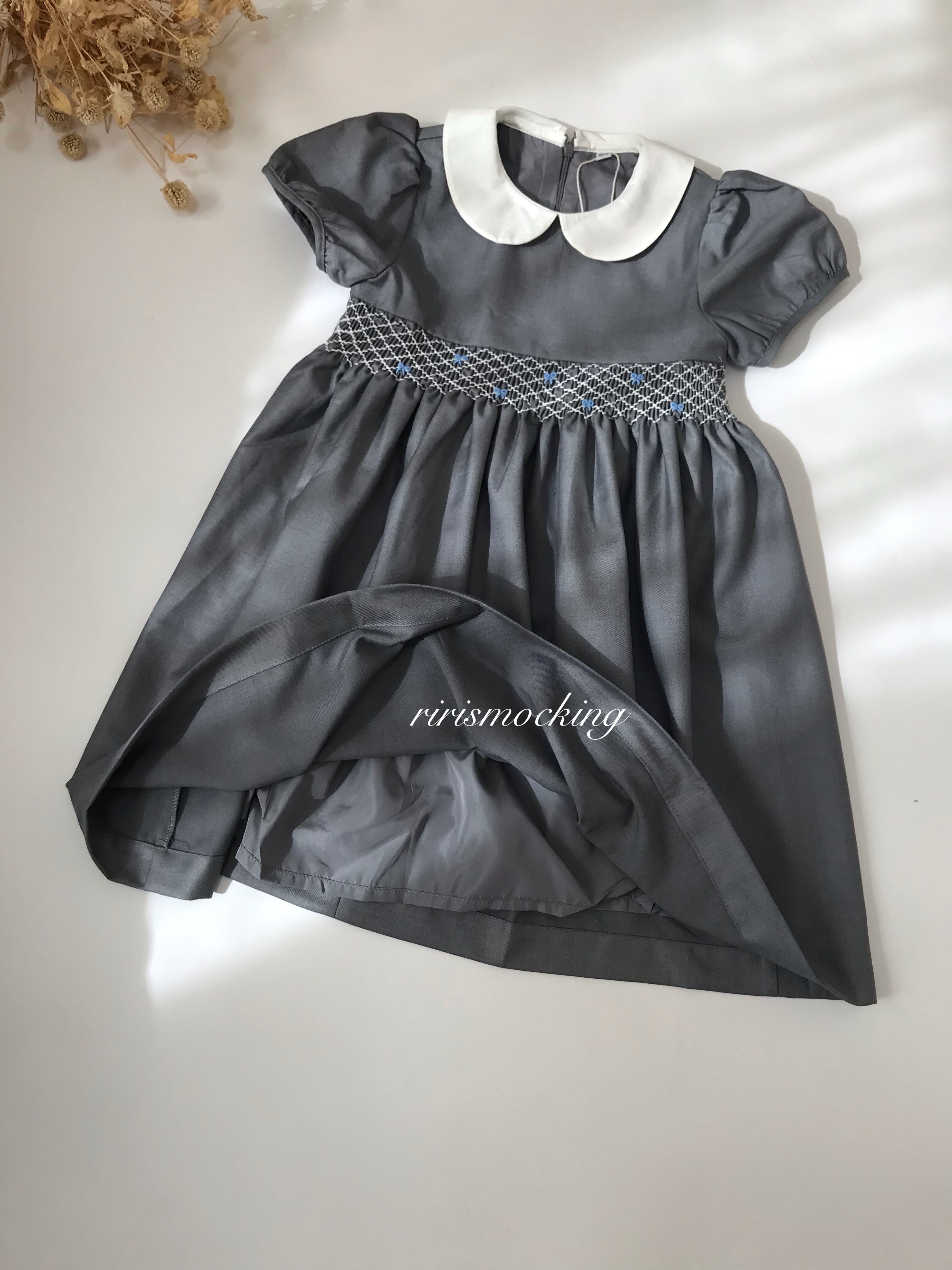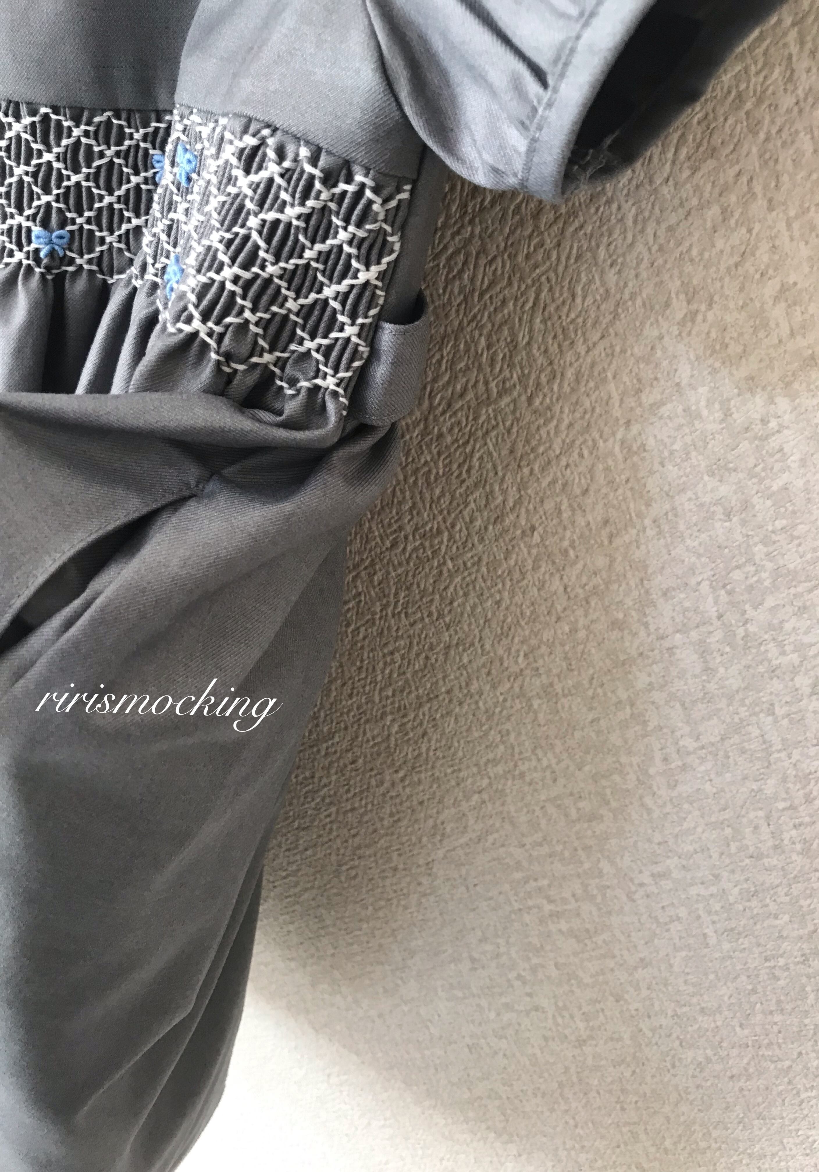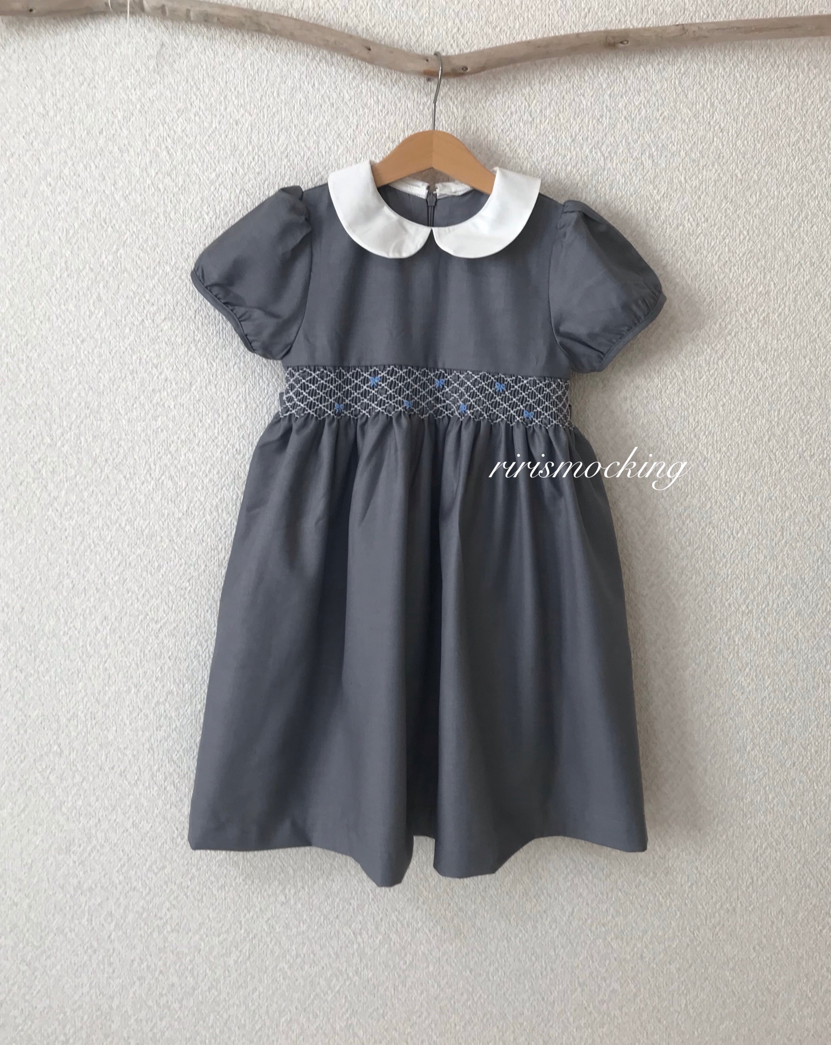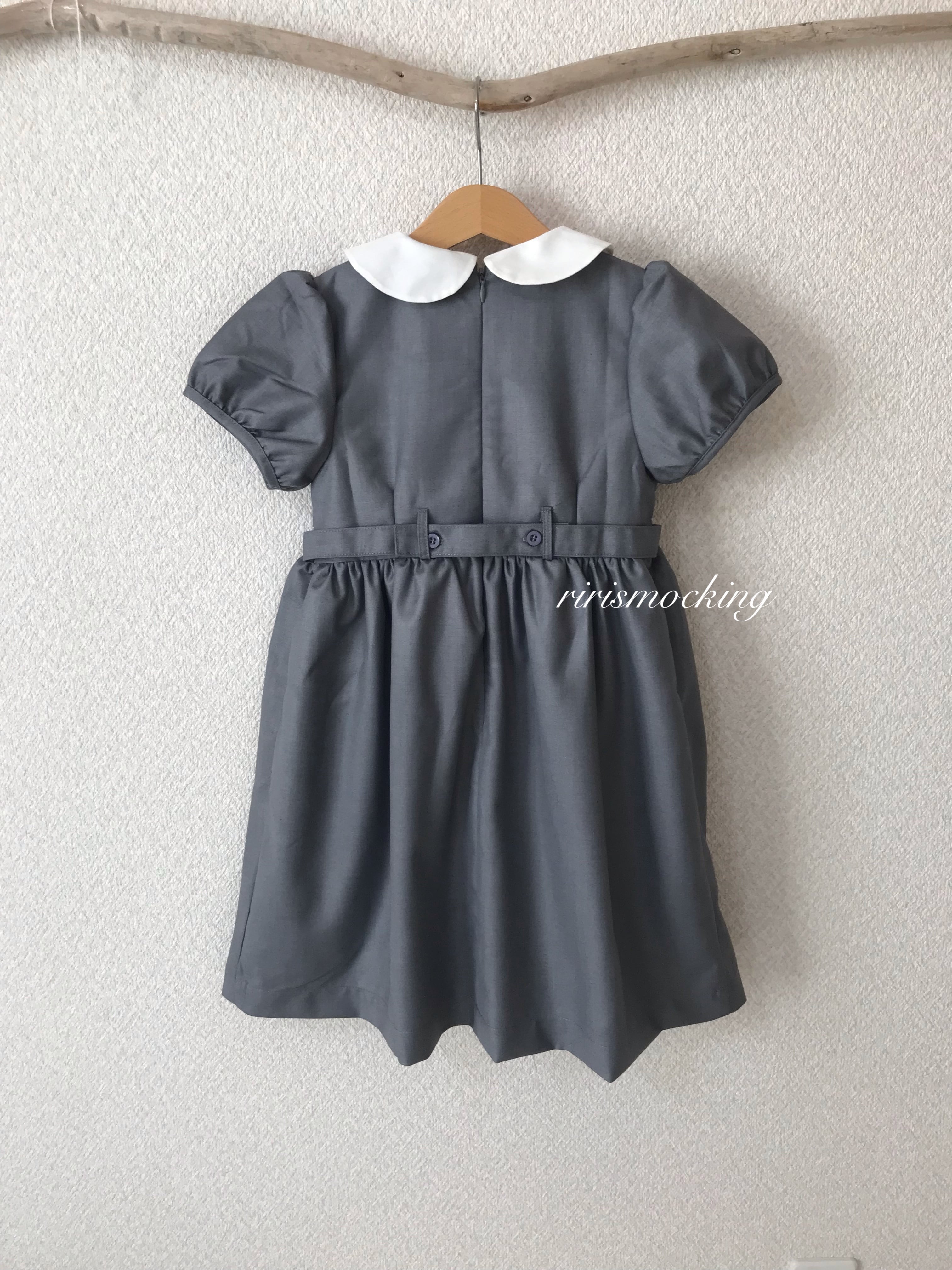 【即納】(90〜130cm)新品 グレー 秋冬春 スモッキング ワンピース