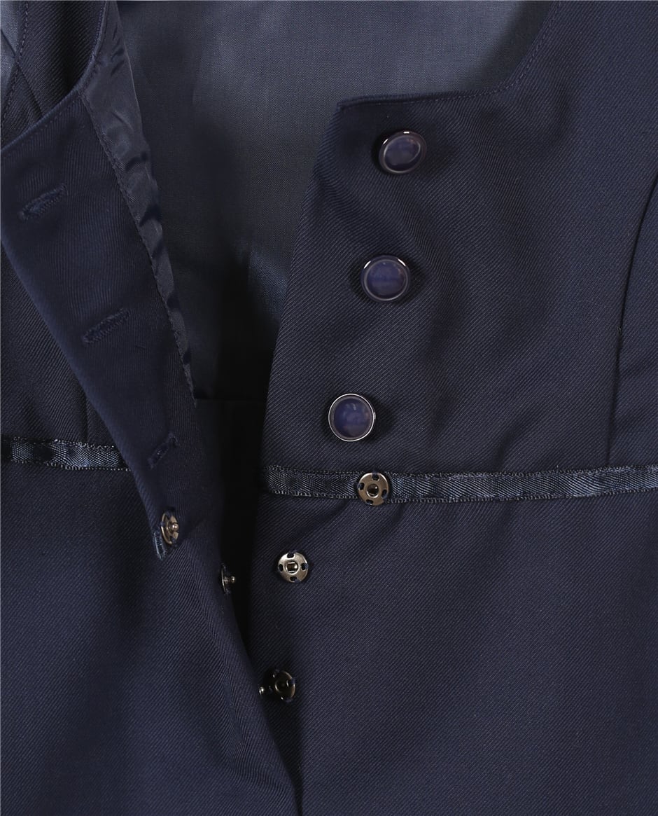 ★新品 裏地付き ネイビー 濃紺 前ボタン ジャンパースカート