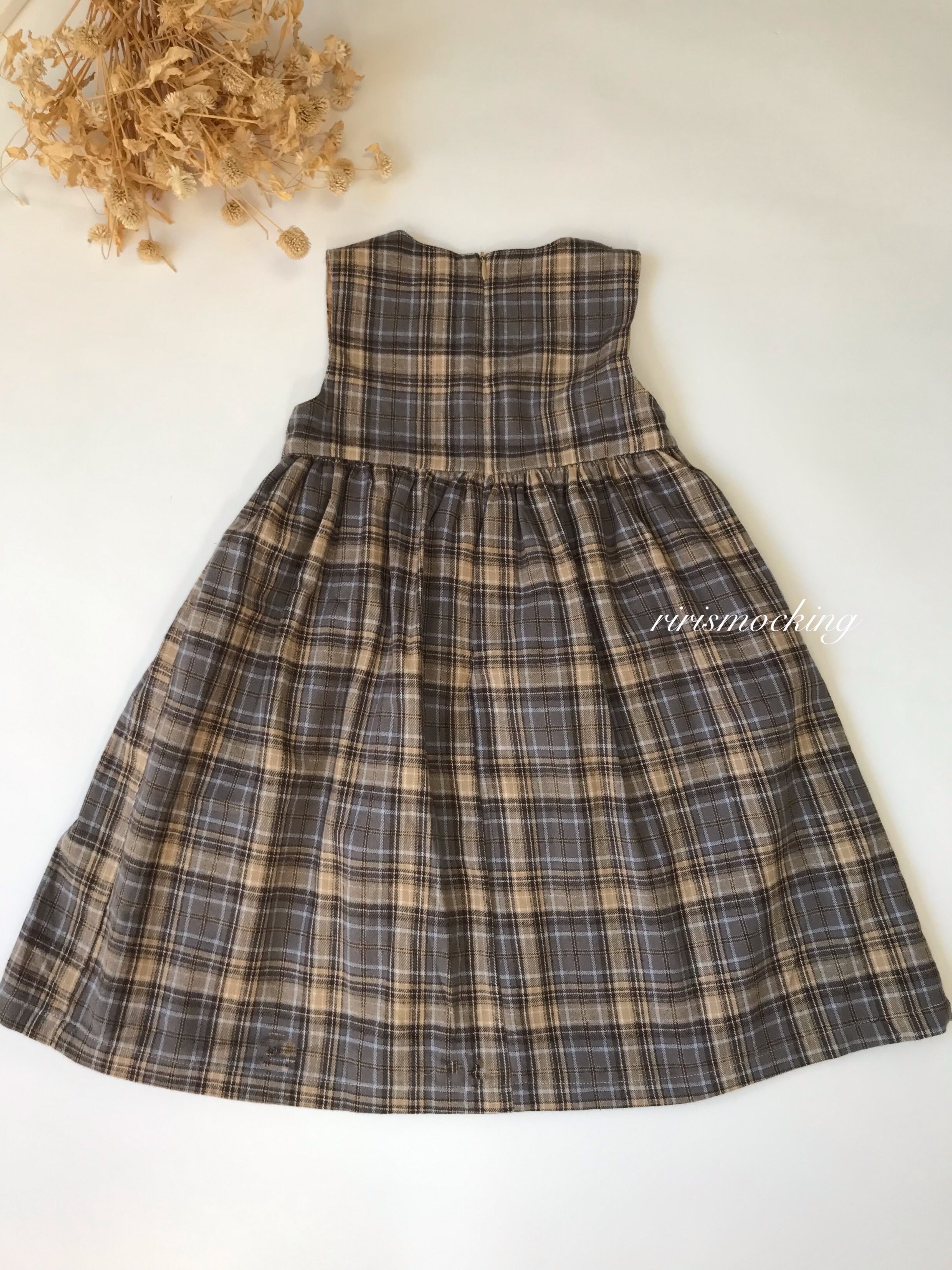 ★新品 チェック スモッキング 刺繍 ジャンパースカート ワンピース