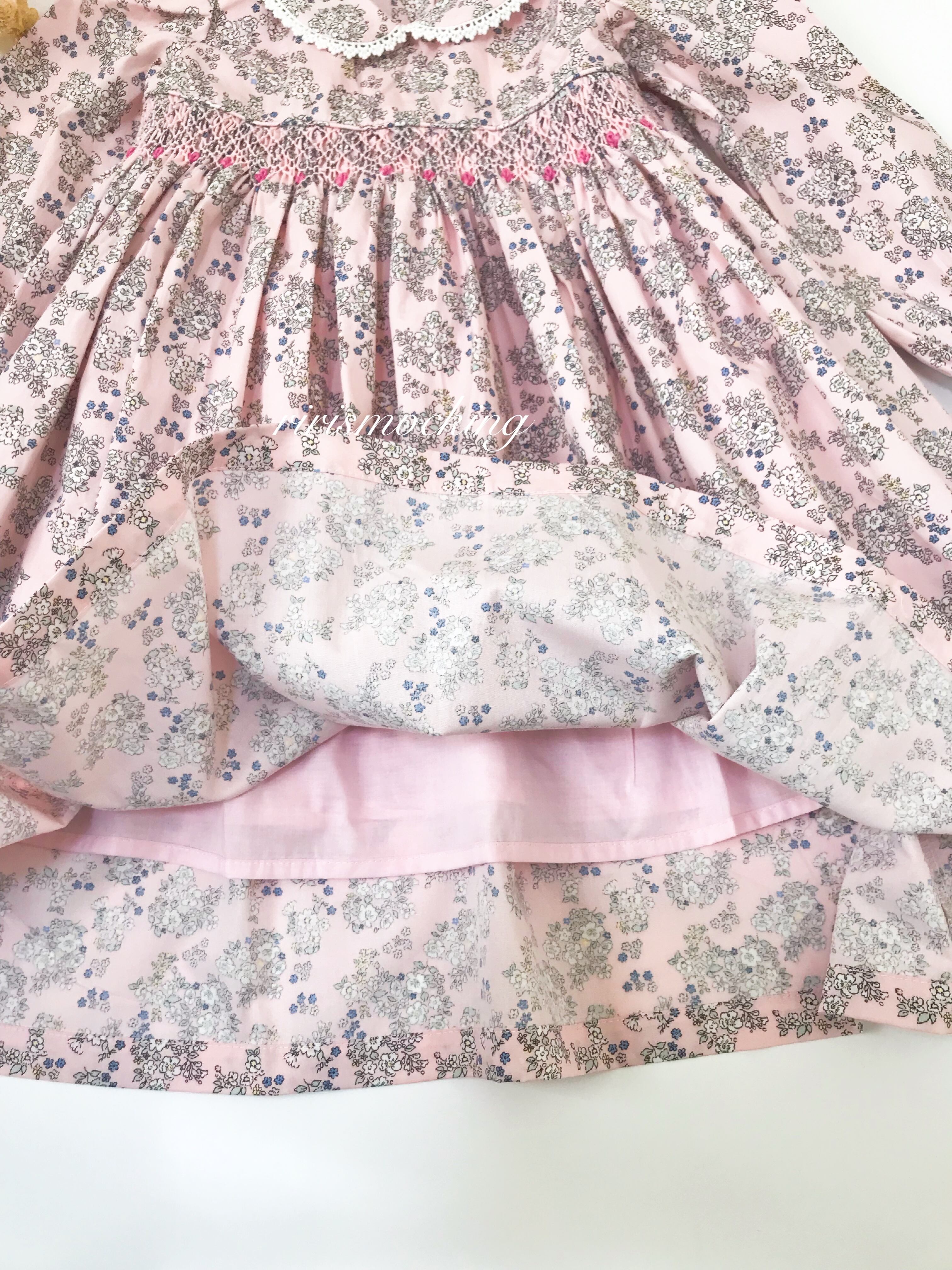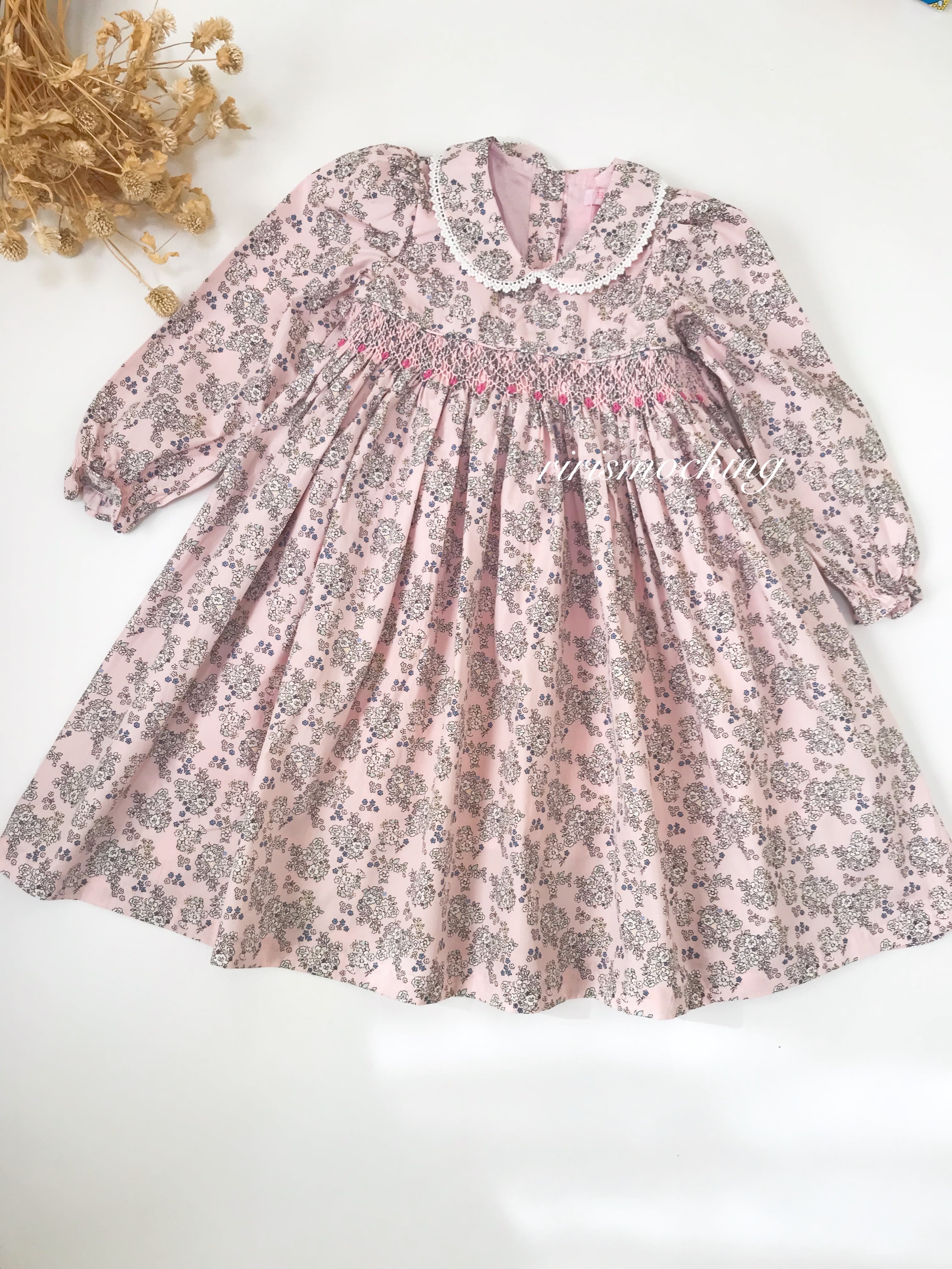 【即納】 95cm新品 ピンク 小花柄 スモッキング ワンピース
