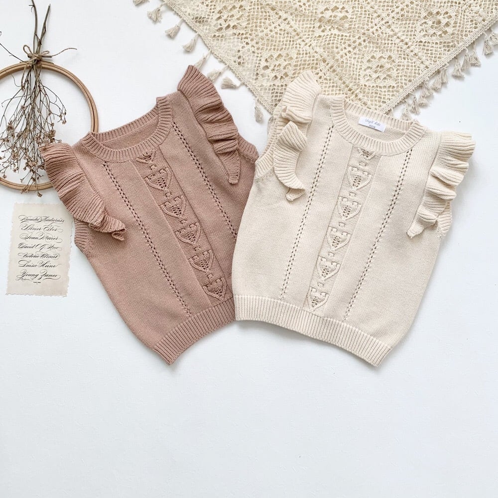 【即納】(90〜140cm)2色 フリル ニット ベスト