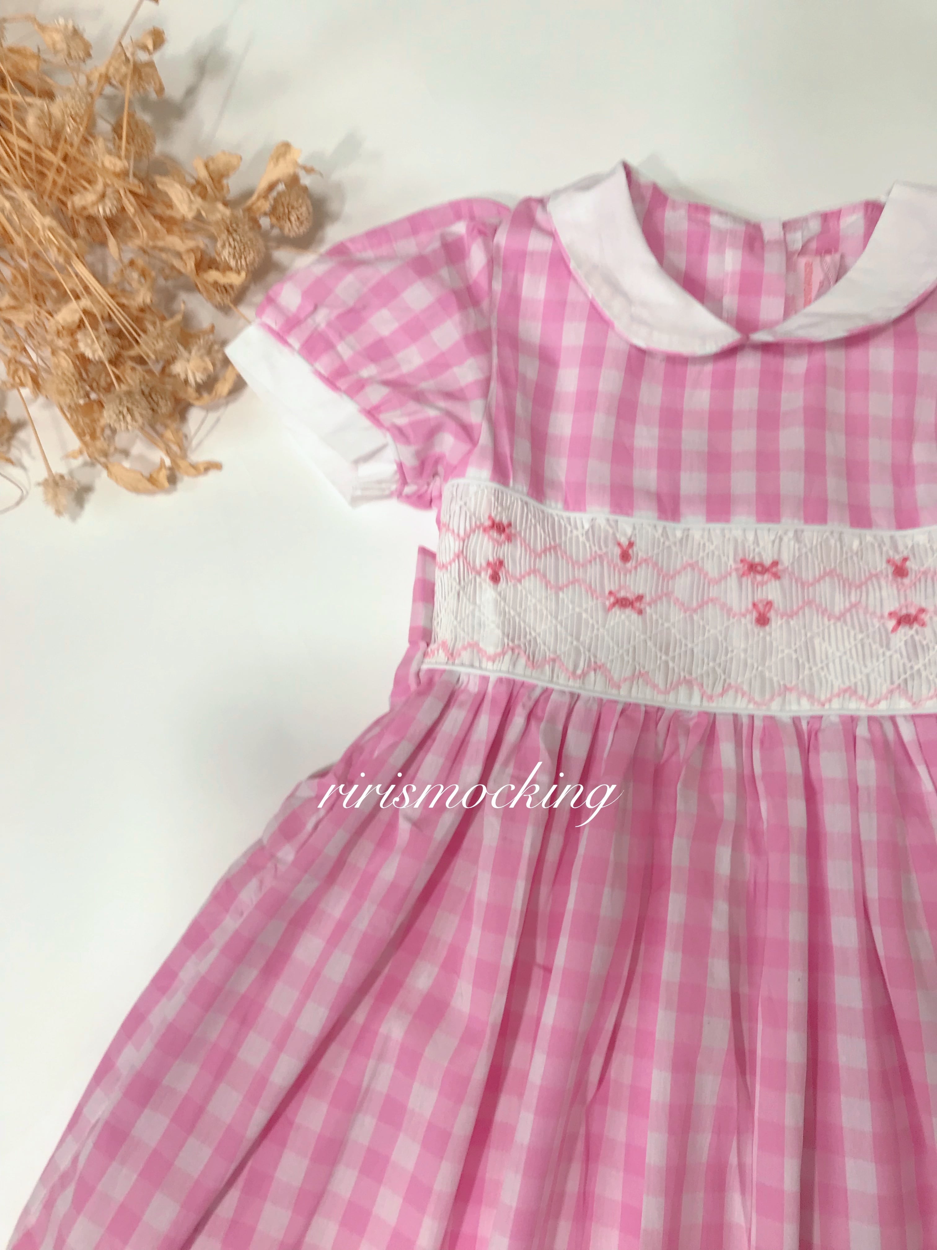 【即納】セール (80〜90cm) ピンク スモッキング ワンピース