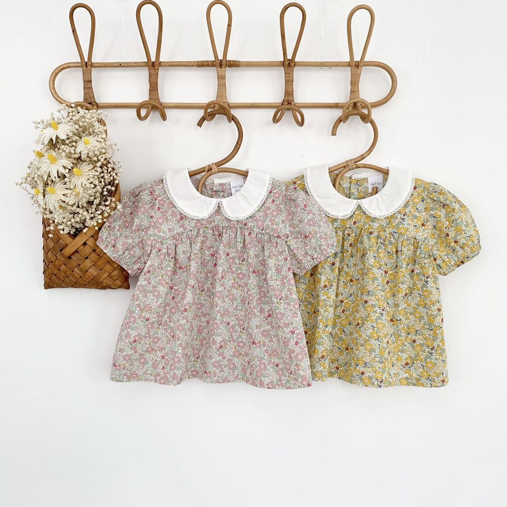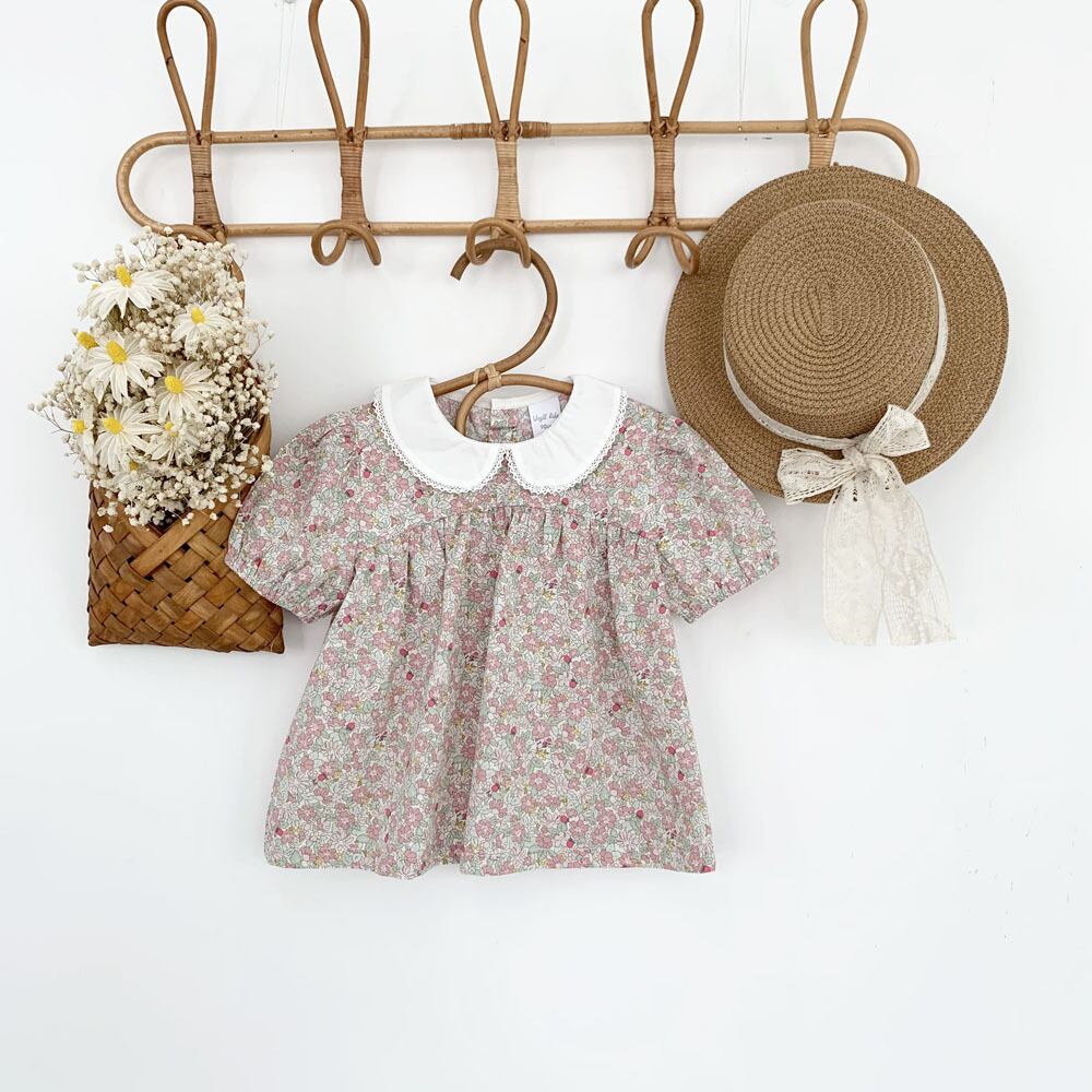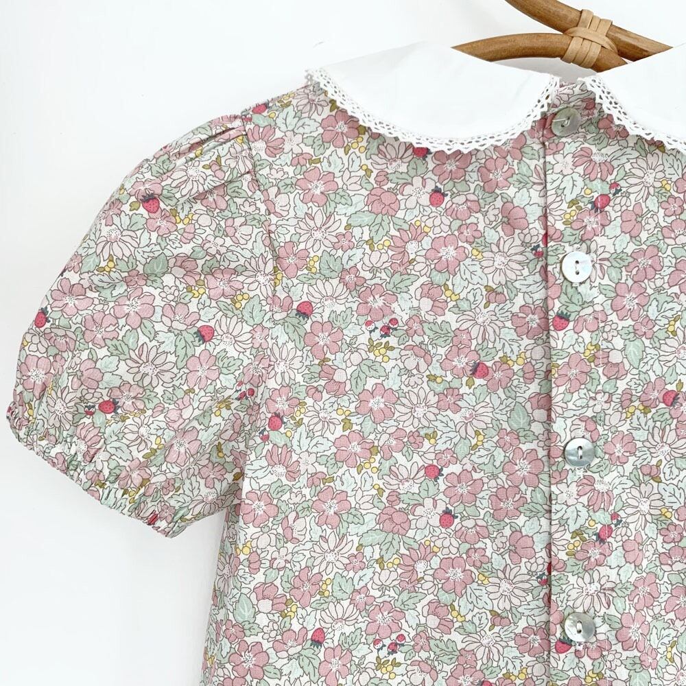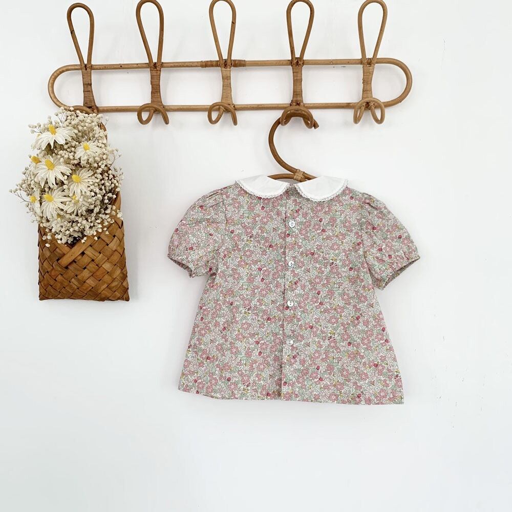 新品 襟付き 半袖 イチゴ柄 ブラウス スモック トップス