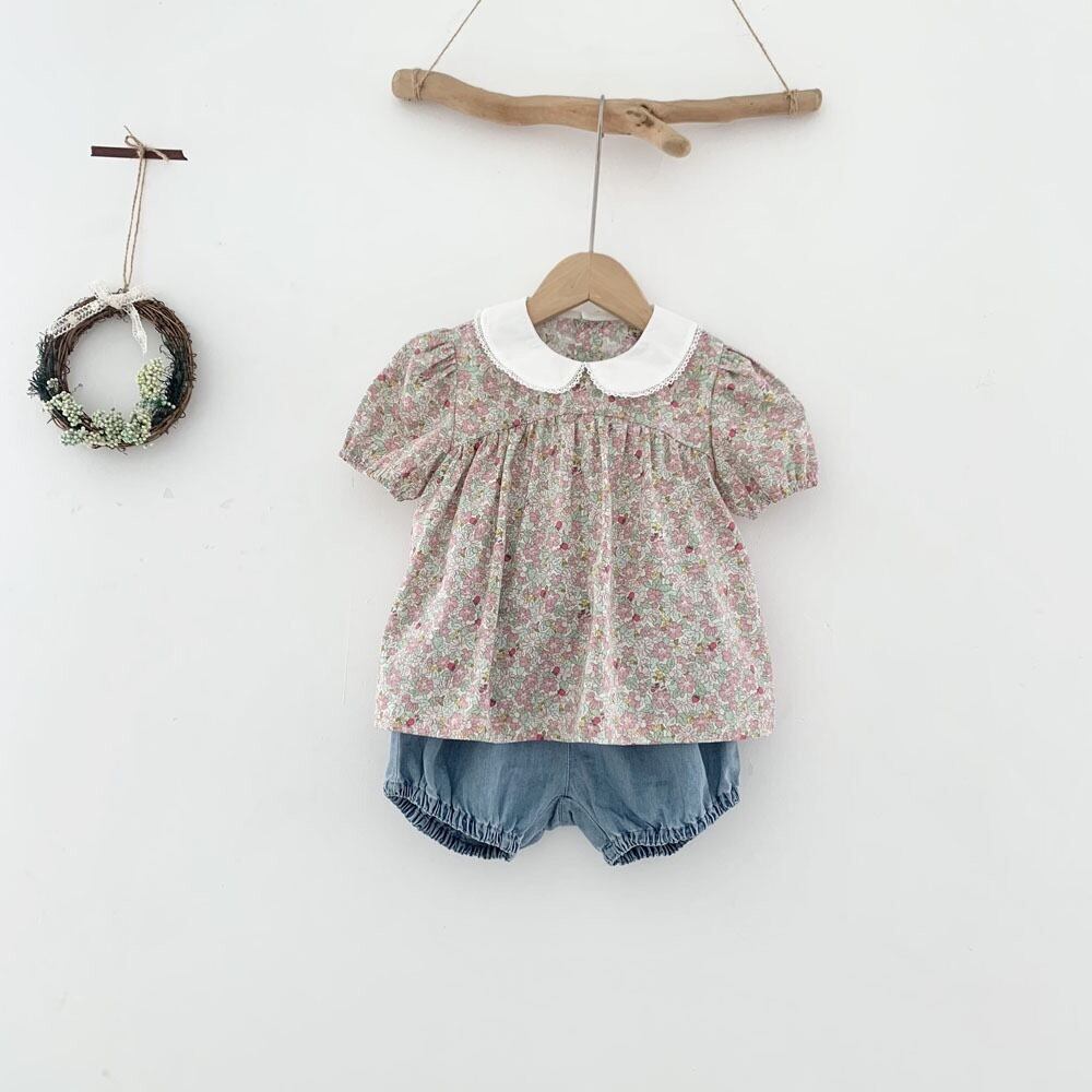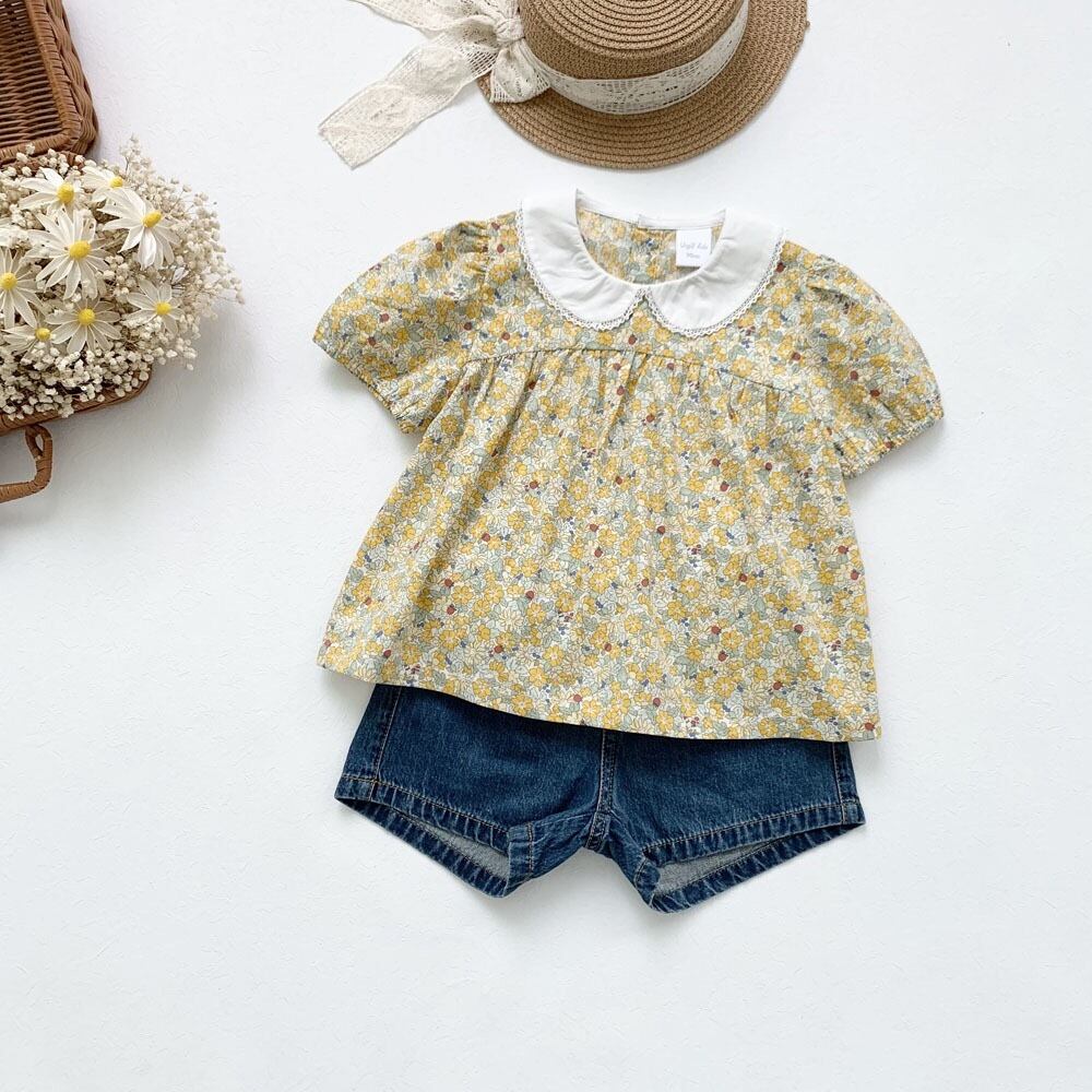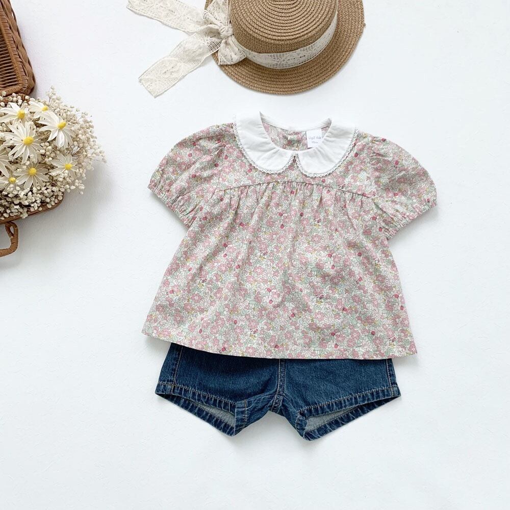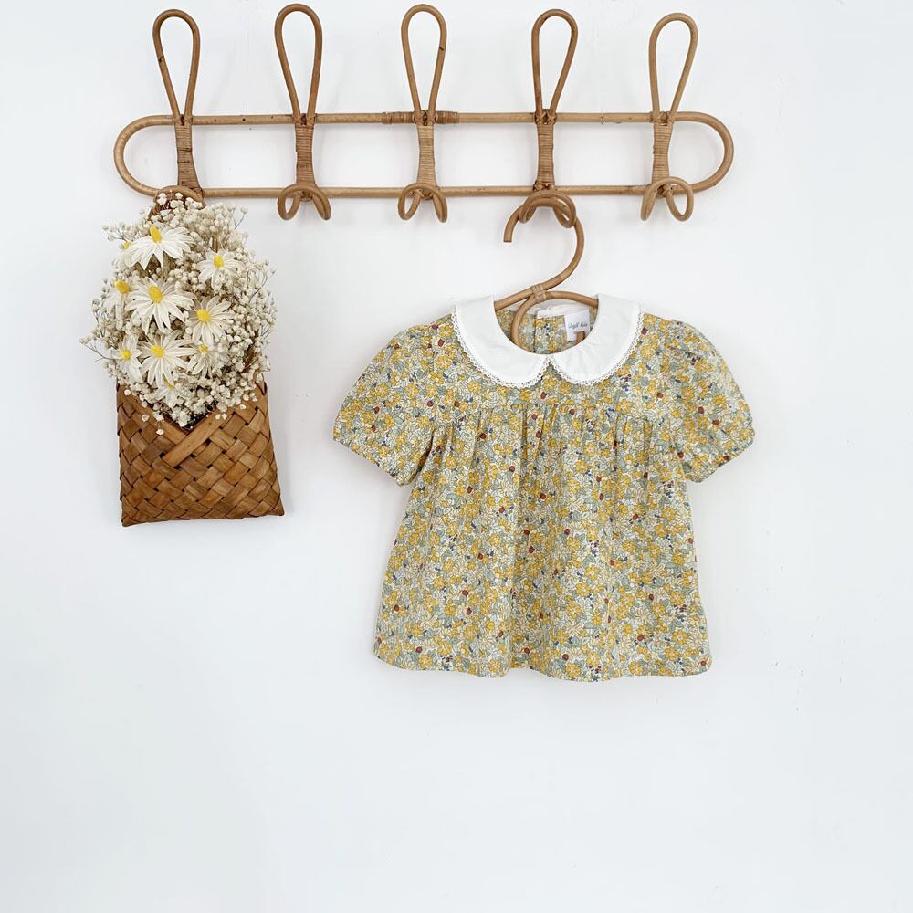 新品 襟付き 半袖 イチゴ柄 ブラウス スモック トップス