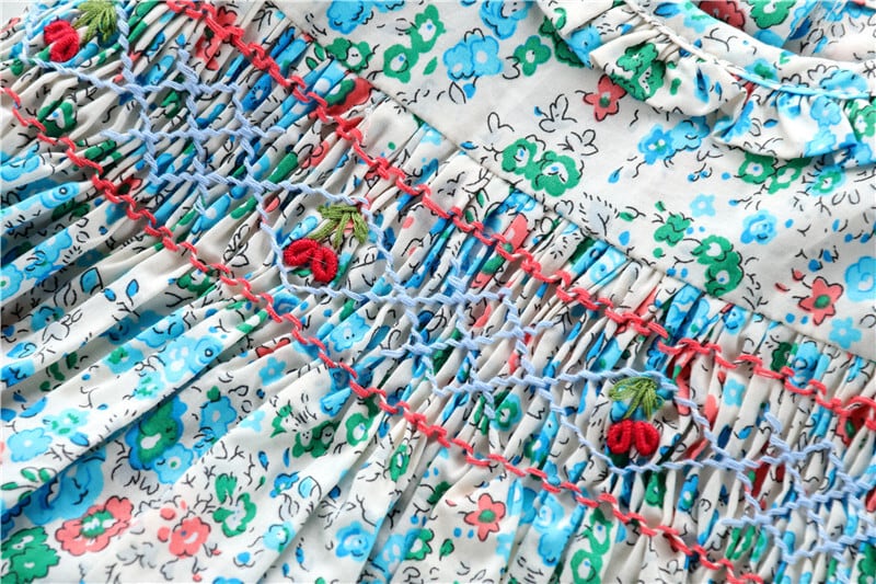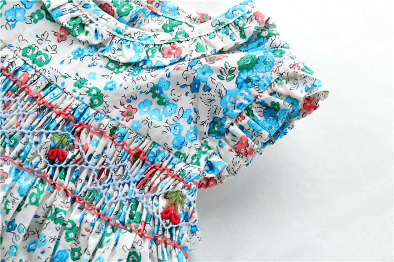 手刺繍のスモッキング刺繍とリボン刺繍とても素敵です。