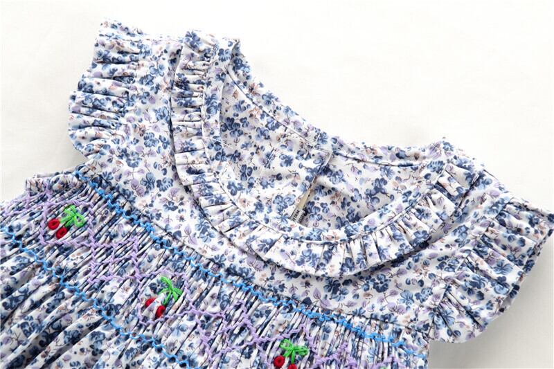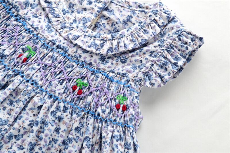 手刺繍のスモッキング刺繍とリボン刺繍とても素敵です。
